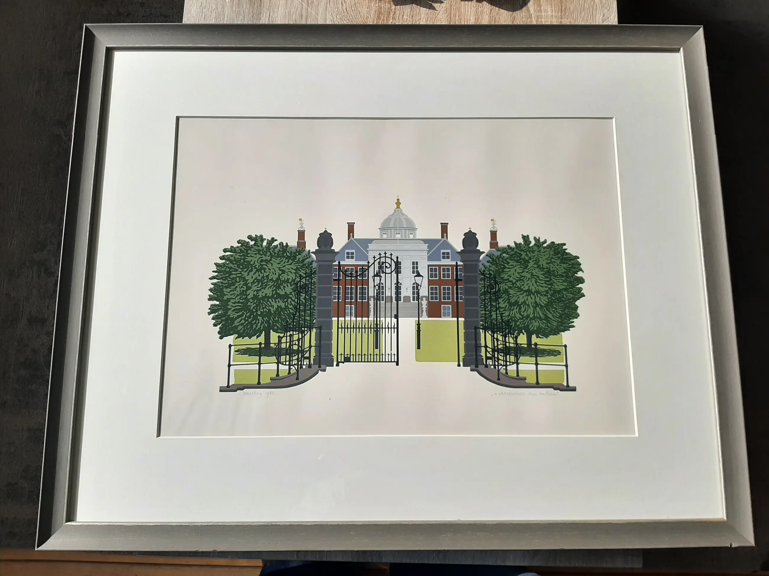 De zeefdruk werd vervaardigd ter gelegenheid van de officiële opening, op 3-11-1982, door Hare Majesteit de Koningin van het nieuwe kantoorpand van de Bank voor Nederlandsche Gemeenten aan de Koninginnegracht 2 te Den Haag. Van deze prent werden 1500 exemplaren in 14 kleuren gedrukt. Zij werden vervolgens door de BNG aangeboden aan de burgemeesters.