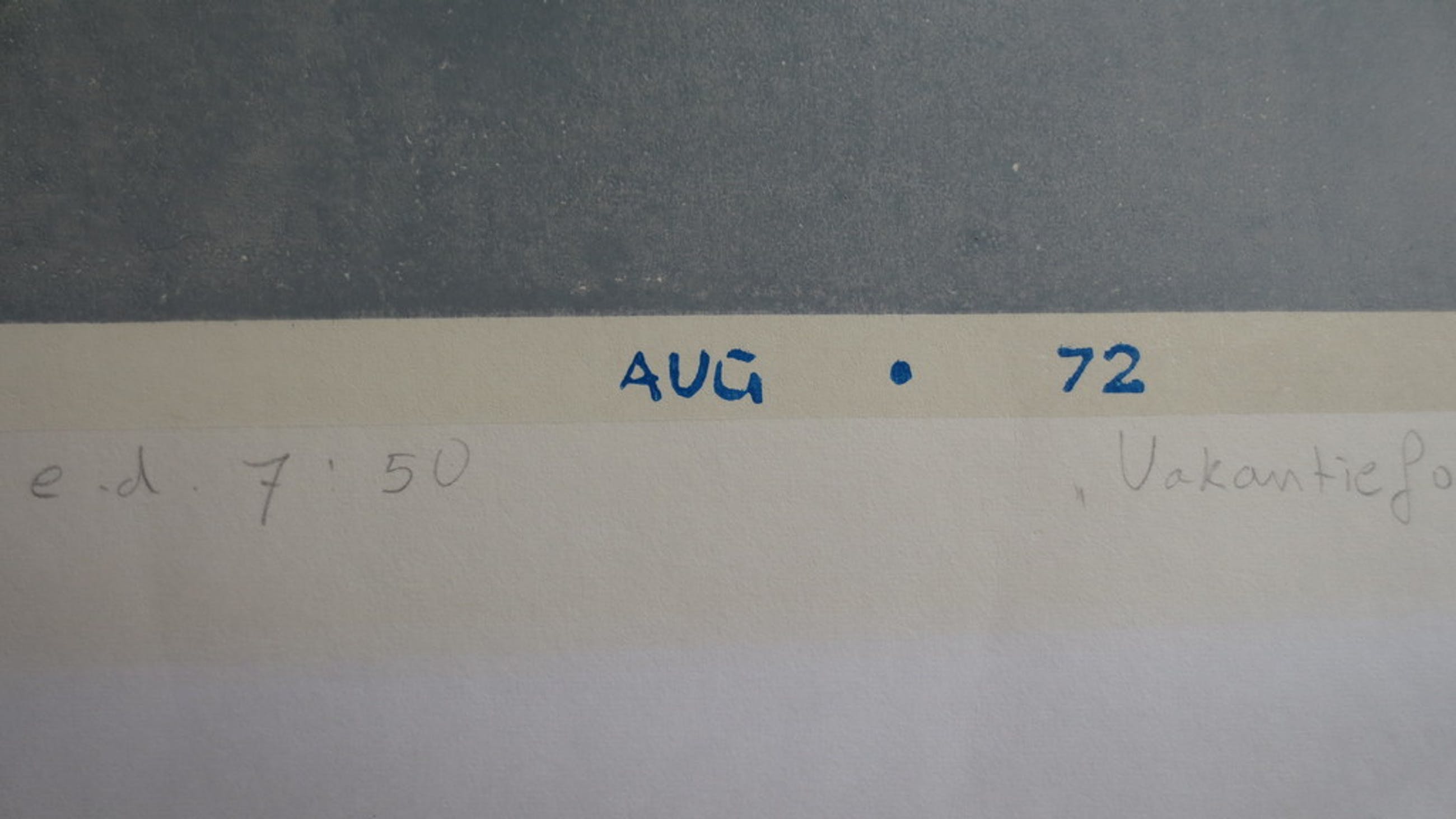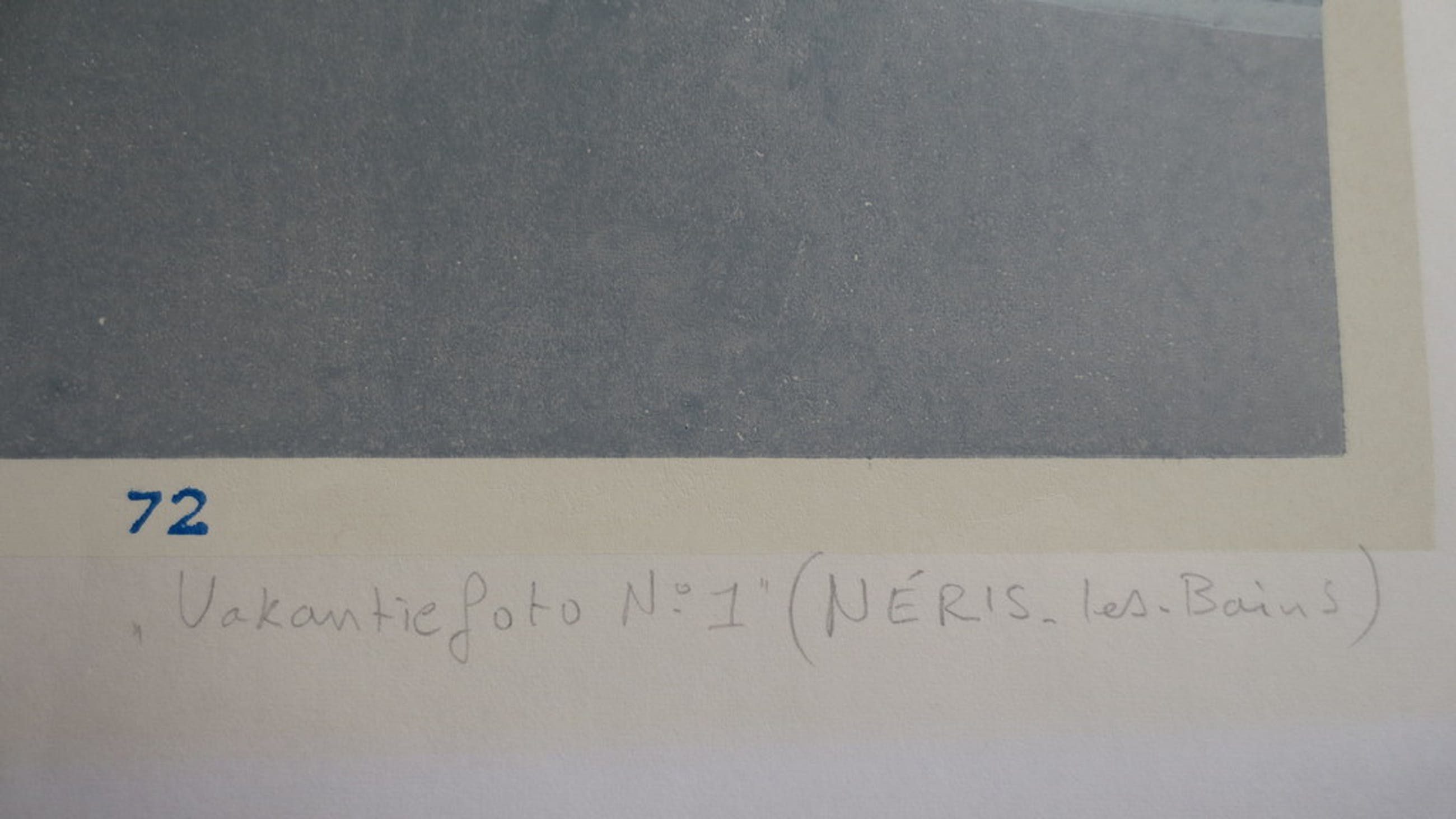Mooie zeedruk, titel "Vakantiefoto nr.1 (Néris-les-Bains) Eigen druk Oplage7/50