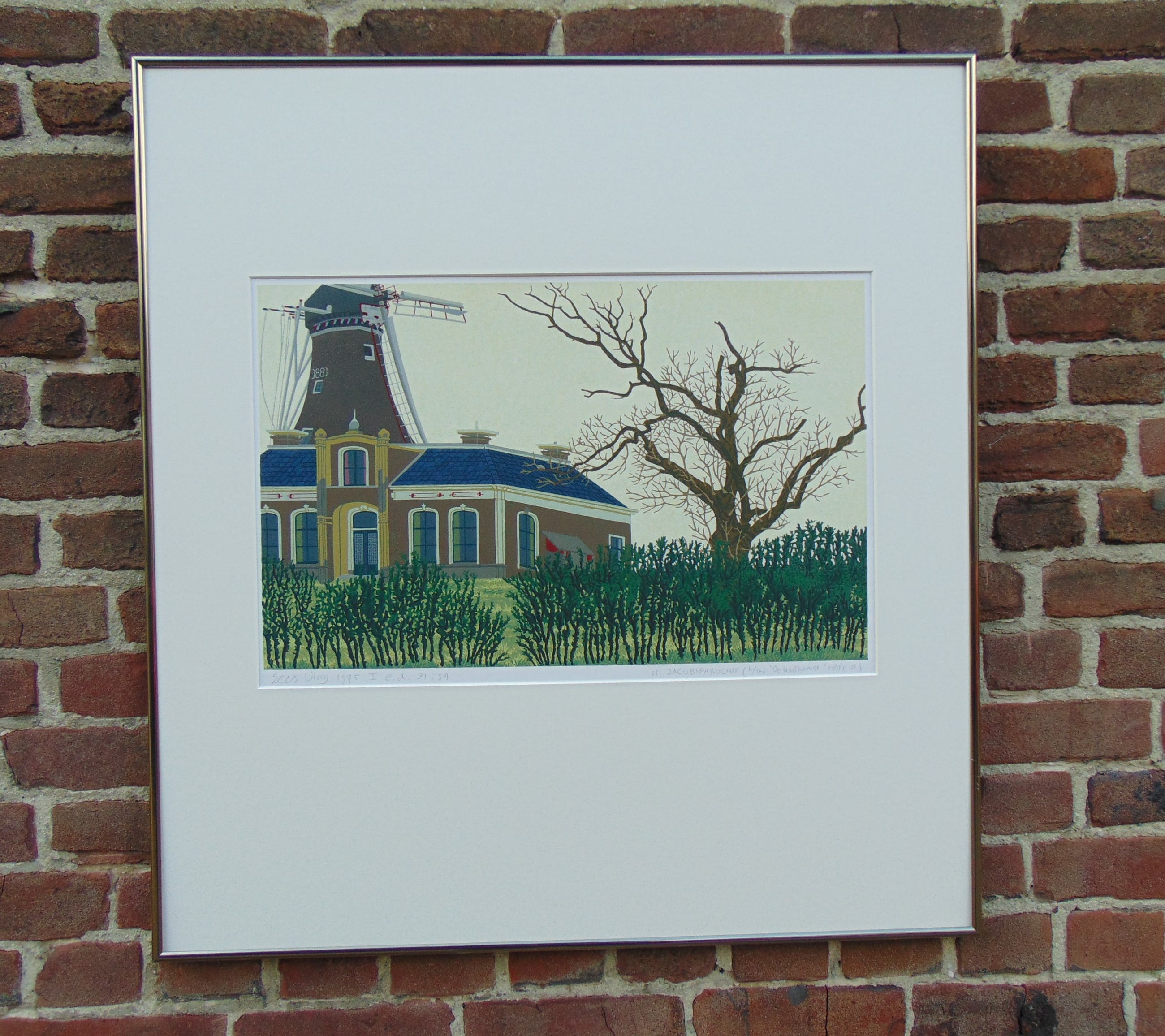 Dit werk is linksonder gesigneerd. Het werk is ingelijst met passe-partout en zit achter glas.