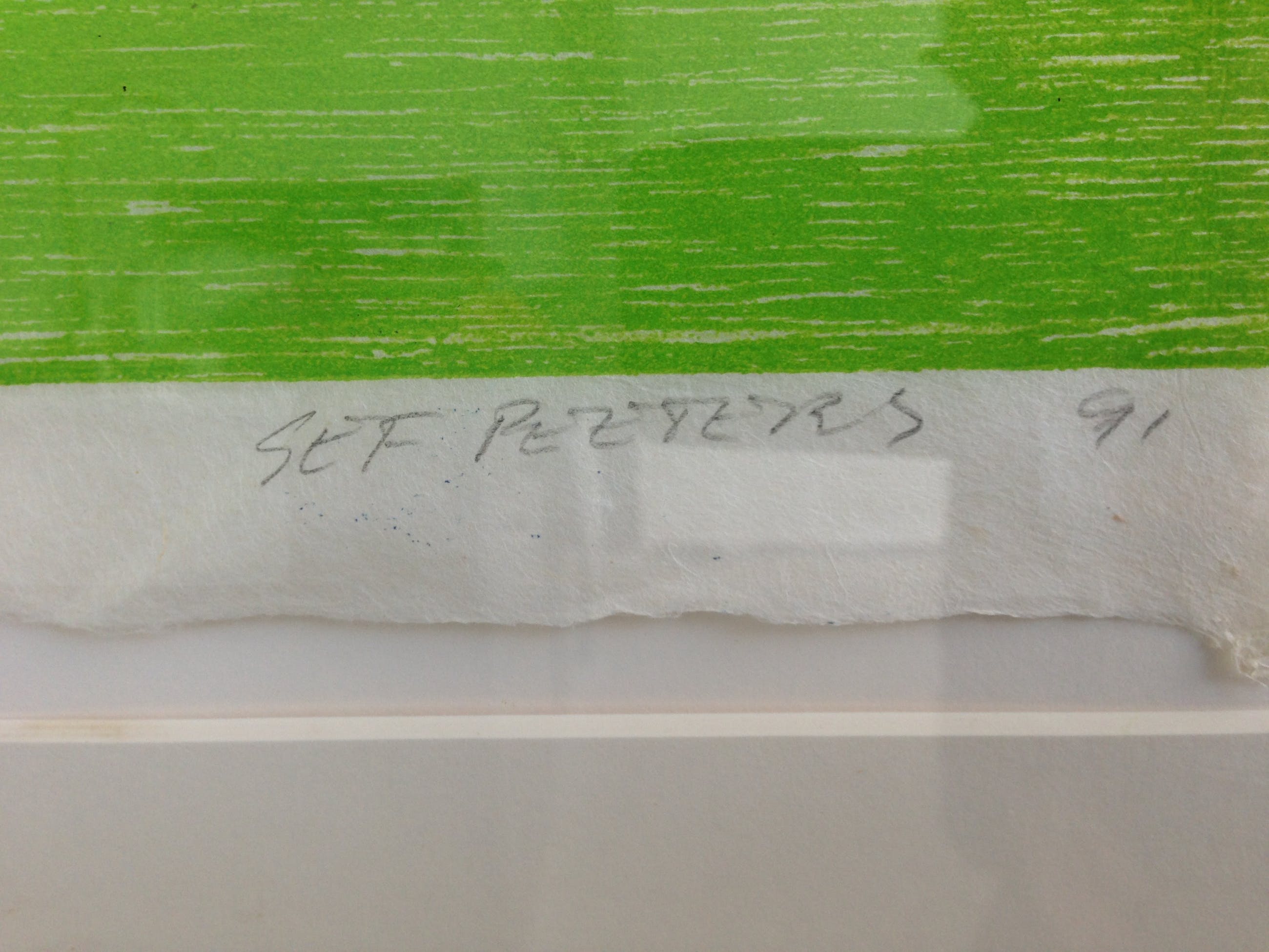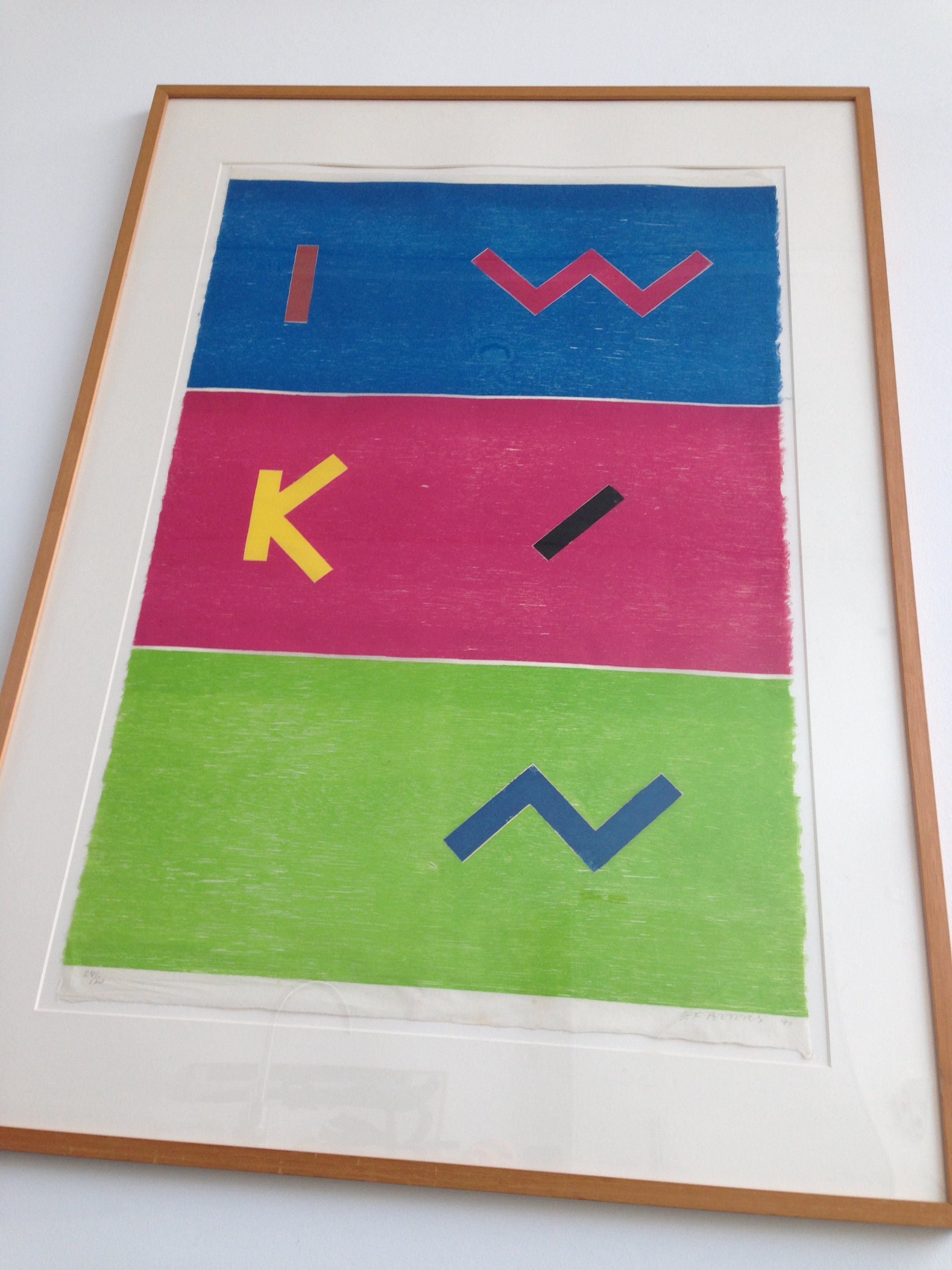 Aangeboden wordt een uitbundige kleurenlithografie van Sef Peeters ( 1947). IK is een belangrijk thema in het œuvre van Peeters, die vooral conceptueel werk maakt.De litho is in 2012 aangeschaft via de Kunstuitleen in Zeeland.