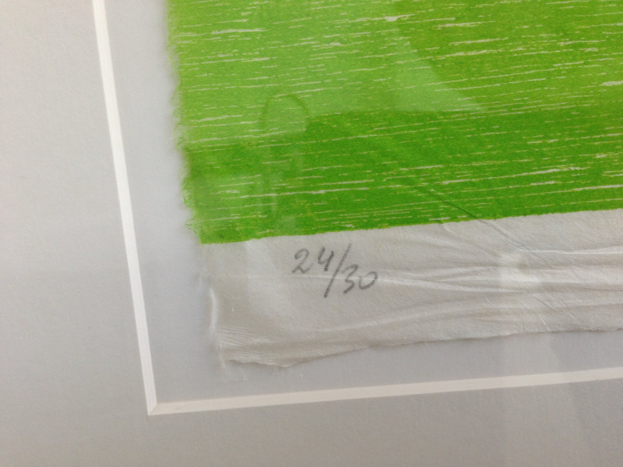 Het betreft een kleurenlithografie op fijn Oosters papier.