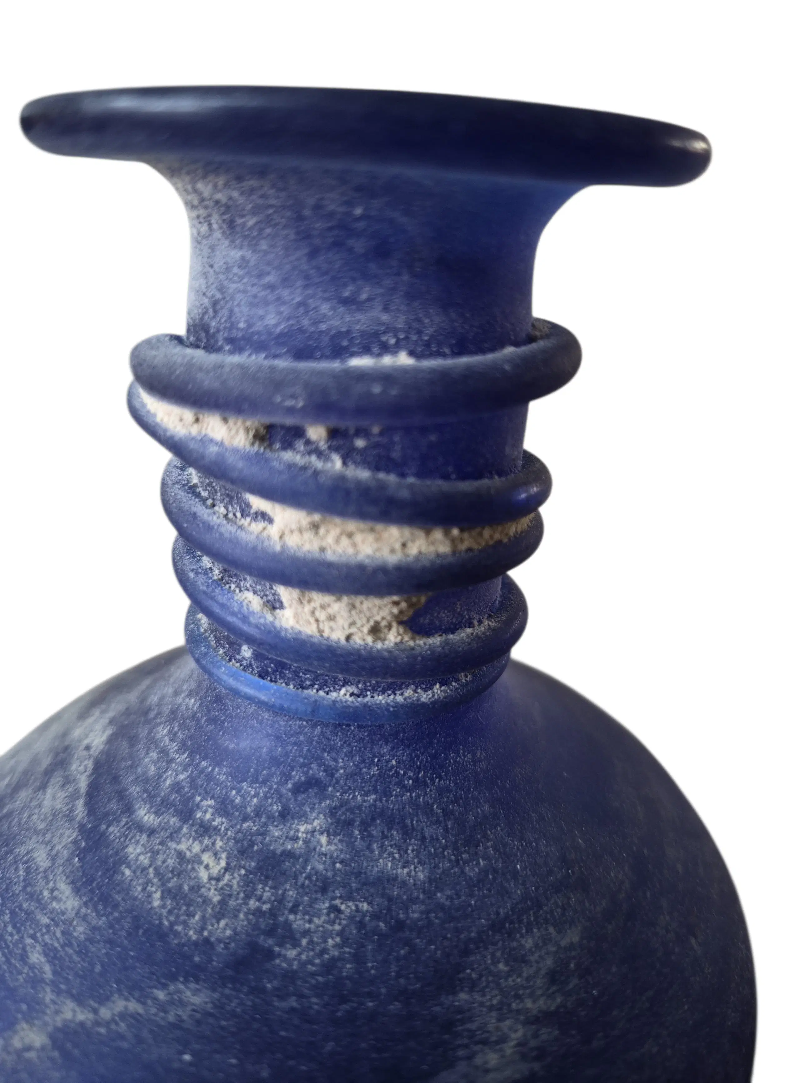 Mooi scavo vaasje ontworpen voor Secuso Vetri d’Arte door Art director Flavio Poli of Archimede Seguso. Scavo is Italiaans voor opgraving. Deze techniek werd ontwikkelden het uiterlijk ende textuur van antiek Romeins glas te imiteren dat eeuwenlang in de aarde had gelegen. Het is handgeblazen. Het heeft geen beschadigingen.