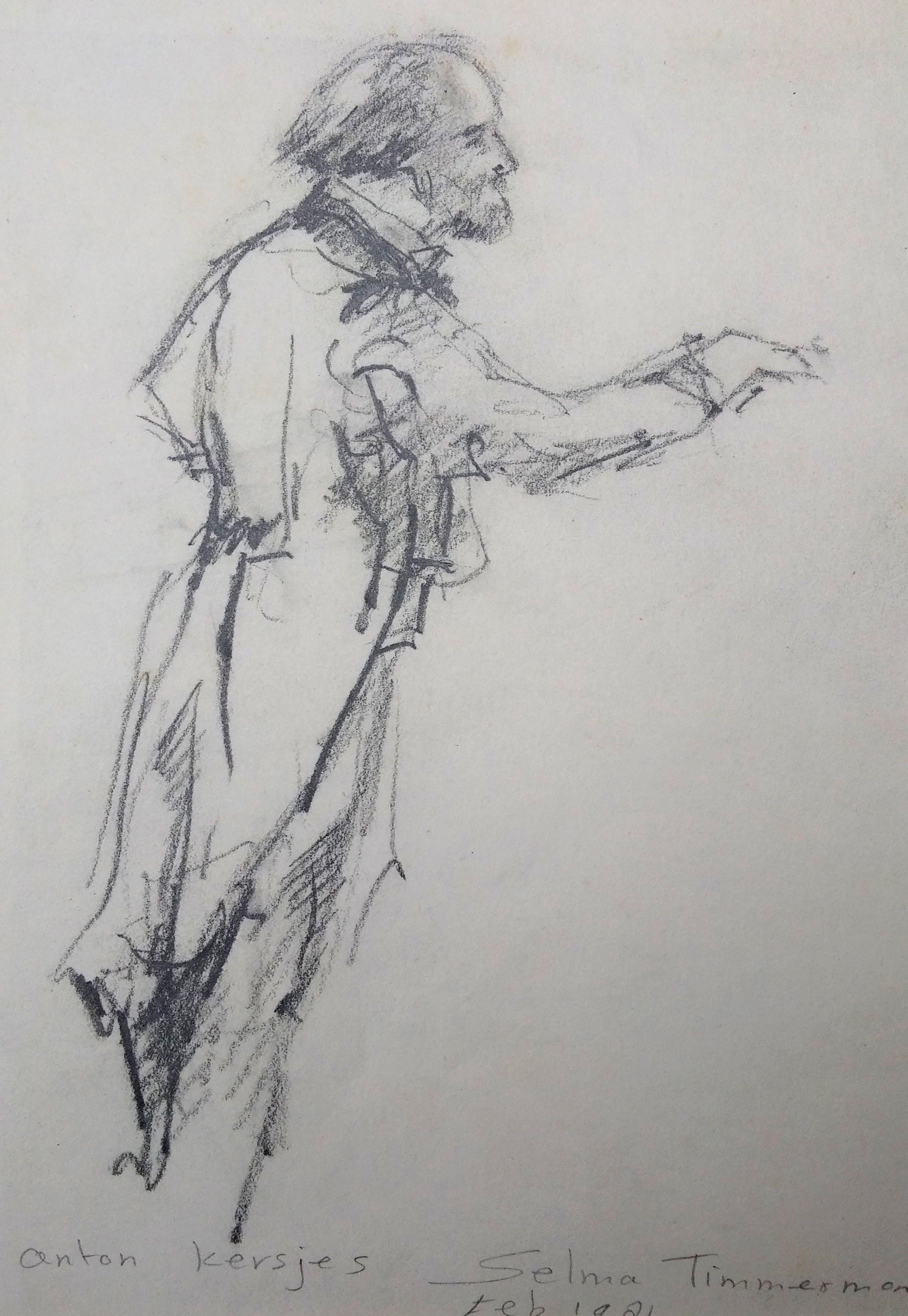 2 potloodschetsen van 'Anton Kersjes met soliste'