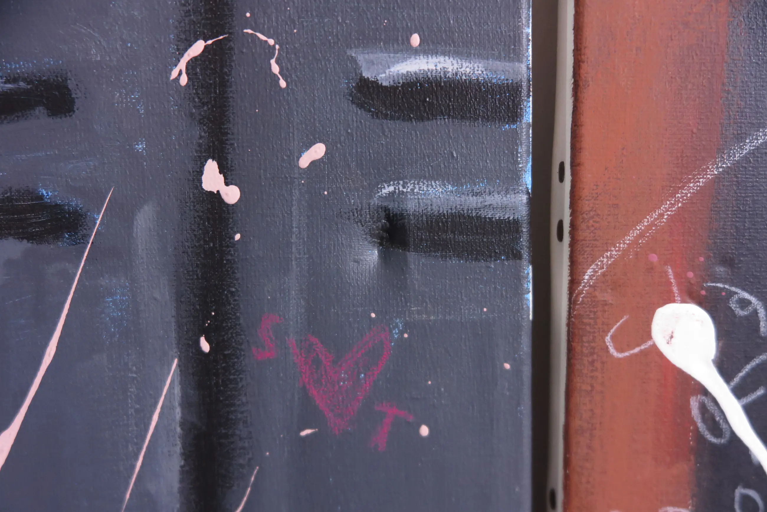 Hier en daar wat lichte schade aan de doeken (deukjes, zie ook foto's). | |