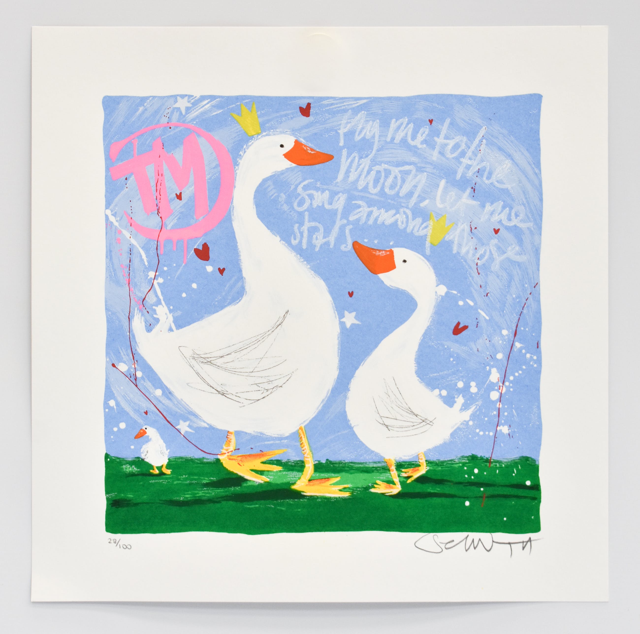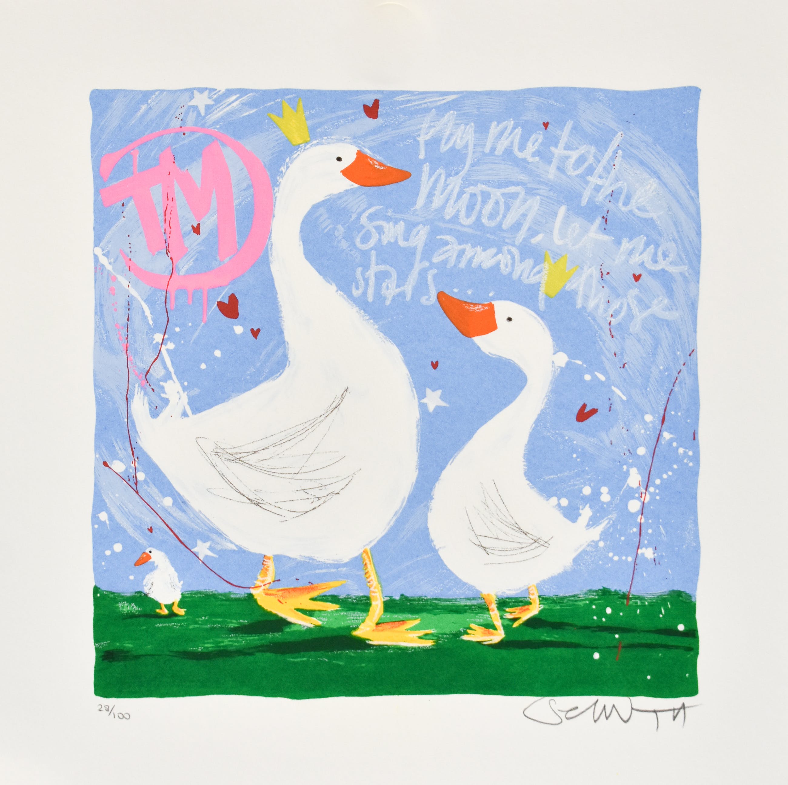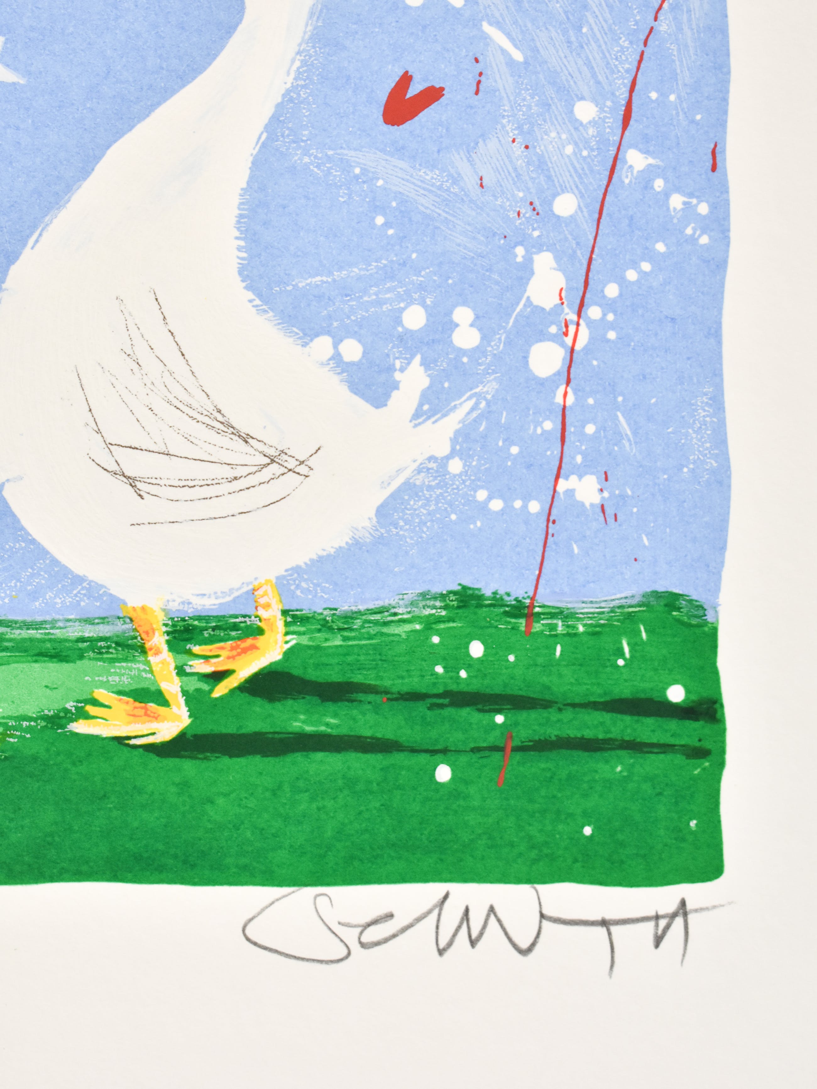 De jonge Nederlandse kunstenaar Selwyn Senatori is de laatste jaren steeds populairder geworden onder zowel het Nederlandse als internationale publiek. Senatori, geboren te Pallanza, Italië, staat bekend om zijn vrolijke en kleurrijke kunstwerken. Selwyn Senatori is werkzaam (geweest) als onder andere illustrator voor kinderboeken en schilder. De talentvolle kunstenaar heeft zijn opleiding genoten aan de Hoge School voor kunsten in Utrecht. Hier volgde hij de opleiding illustratieve vormgeving. Door publicaties in de pers en de nominatie als aankomend illustratief talent werd de naam Selwyn Senatori steeds bekender in de kunstwereld. Graag de kavelfoto’s goed bestuderen. Schade en oneffenheden zichtbaar op de foto’s maken onderdeel van de beschrijving.