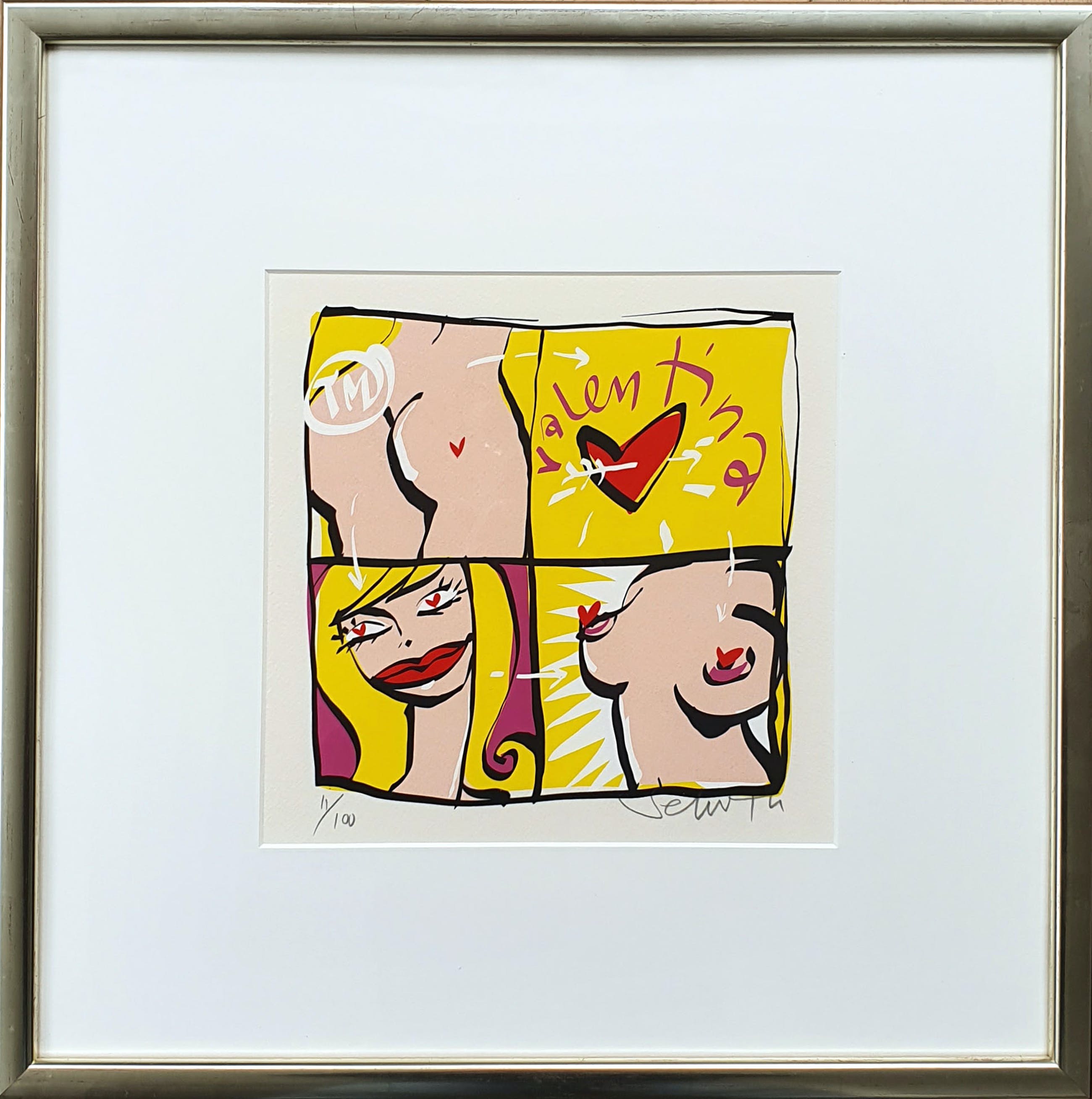 Mooie zeefdruk met passe partout van Selwyn Senatori uit een oplage van 100 stuks.