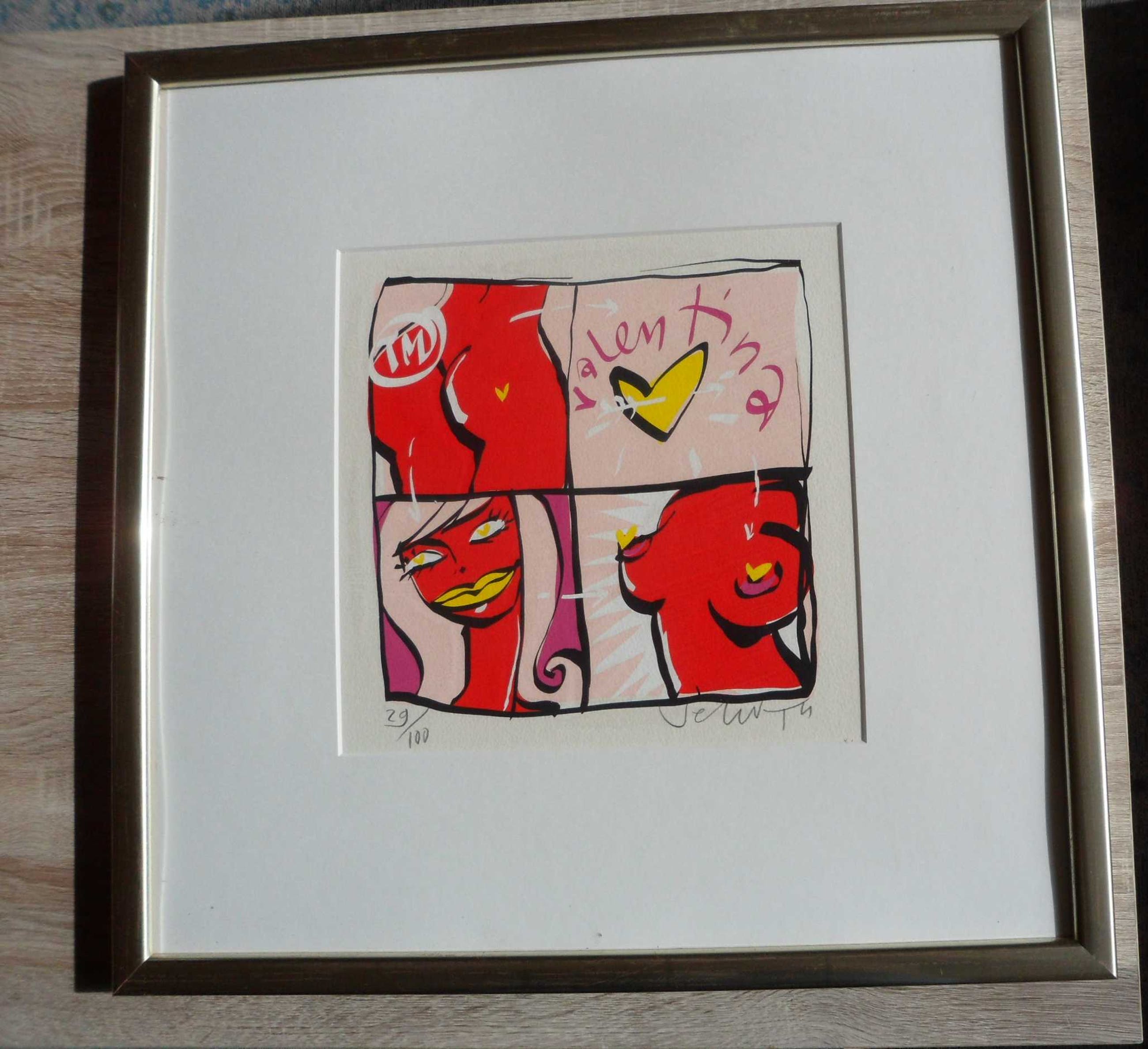 Dit is nummer 29 van 100. Rechtsonder gesigneerd. Het totale werk is 53 cm bij 53 cm.