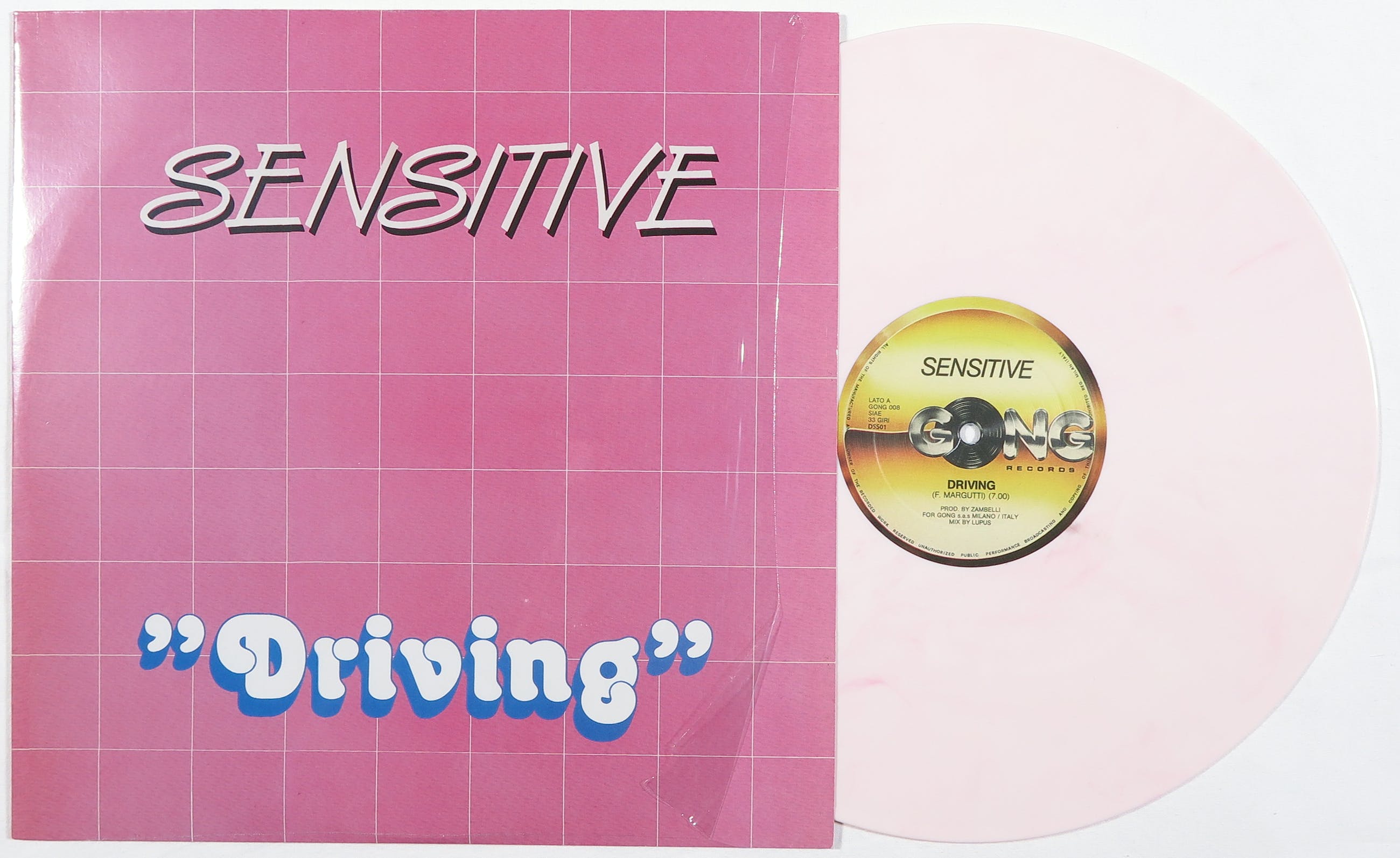 Limited edition album Driving van de Italiaanse band Sensitive. Het genummerde album (7/100) is uitgegeven op roze vinyl. Het album zit nog gedeeltelijk in de oorspronkelijke seal.
