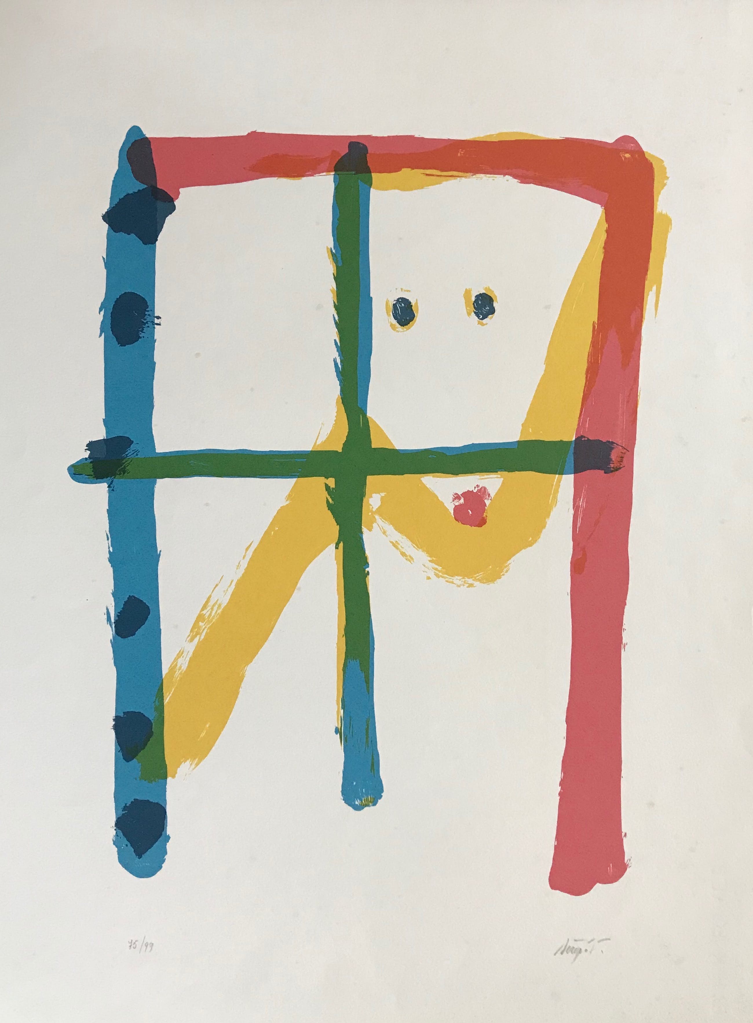 Originele, kleurrijke lithografie op geweven papier. Afmeting: 65 x 50 cm. Genummerd en gesigneerd in potlood door de kunstenaar. Oplage: 75/99