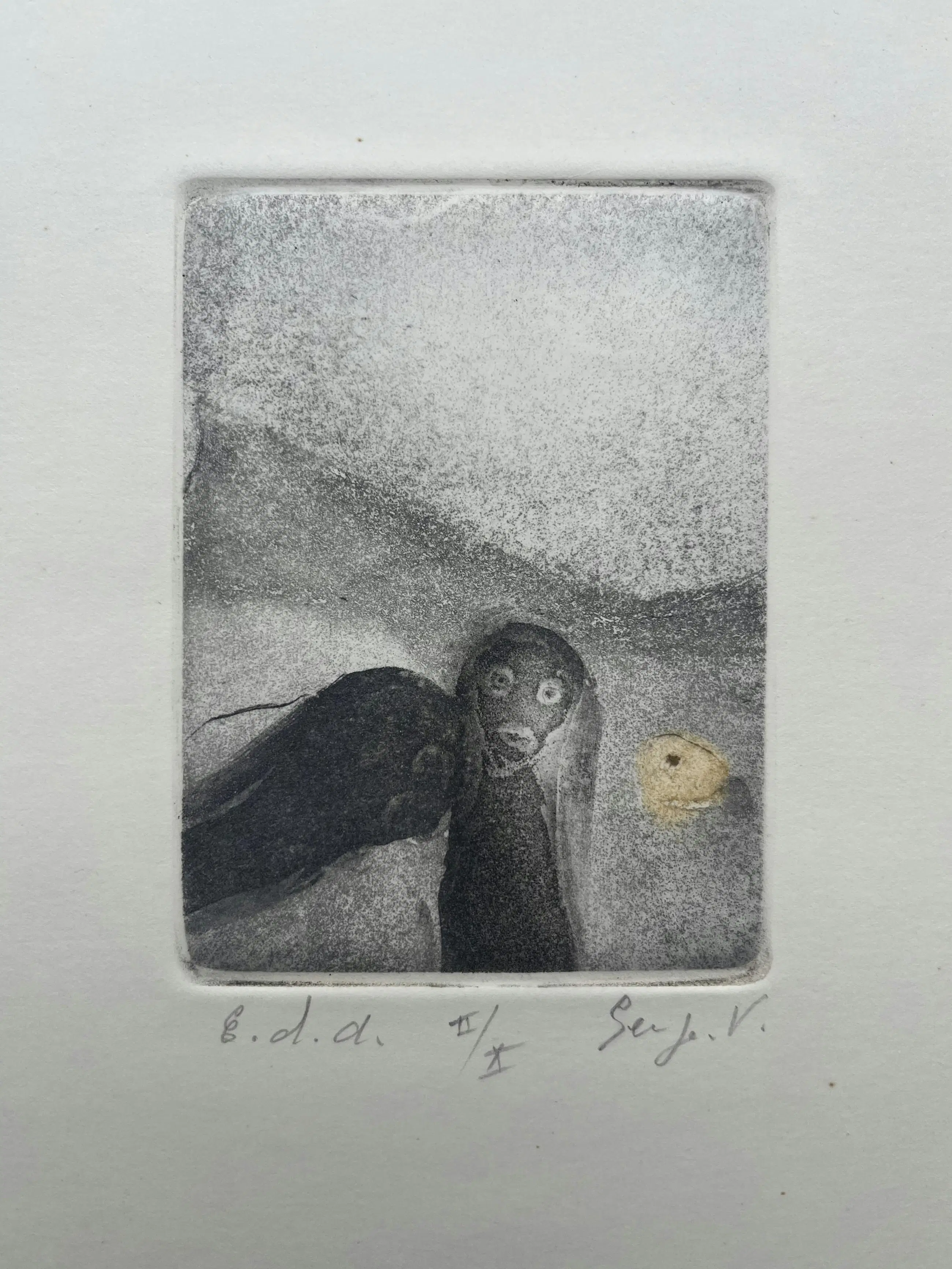 De finesse en de subtiliteit van het aquatint zorgen voor een zekere kracht in het silhouet dat de œuvres van Serge Vandercam kenmerken