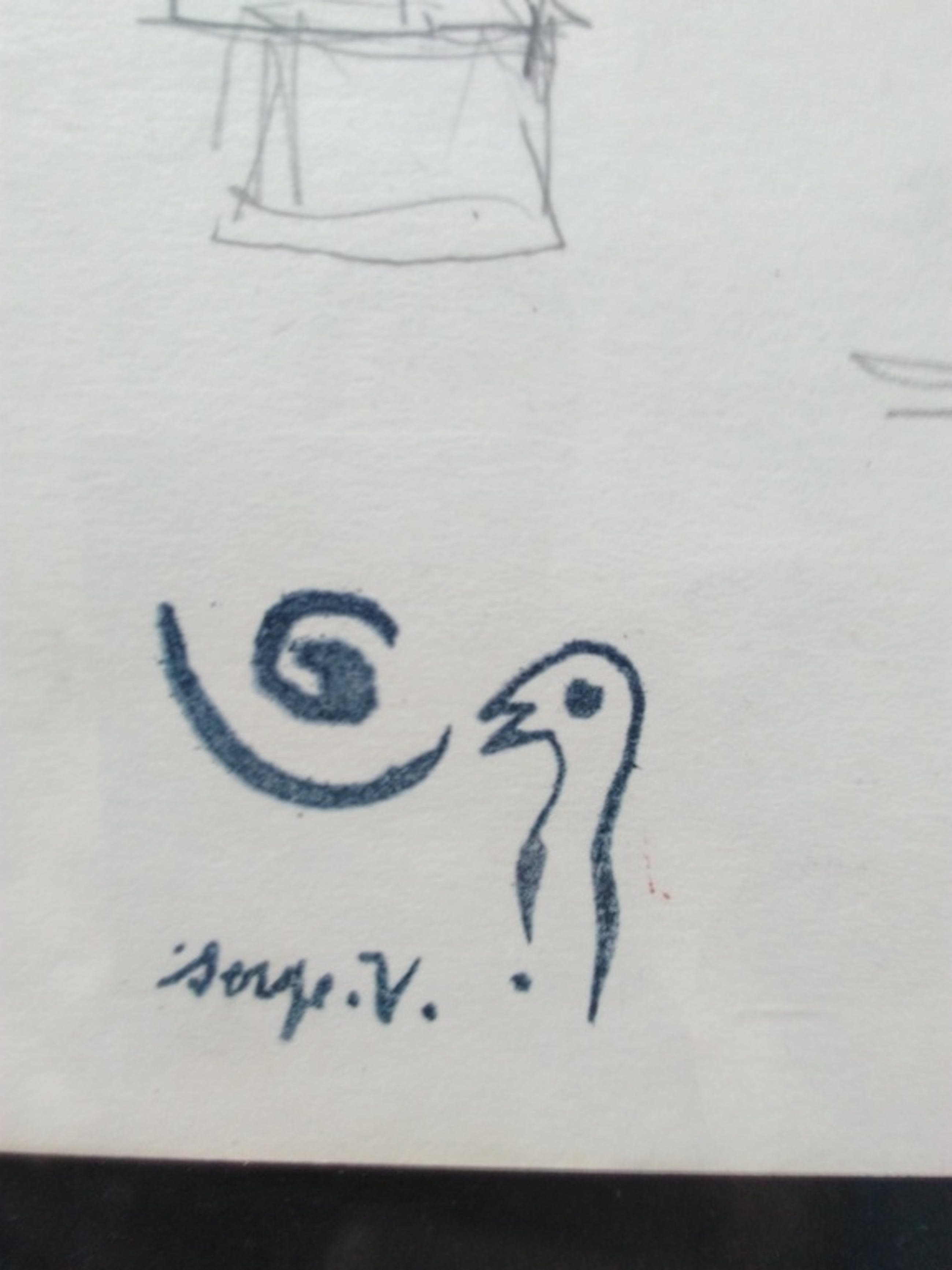 Originele tekening van de bekende belgische CoBrA kusntenaar Serge Vandercam