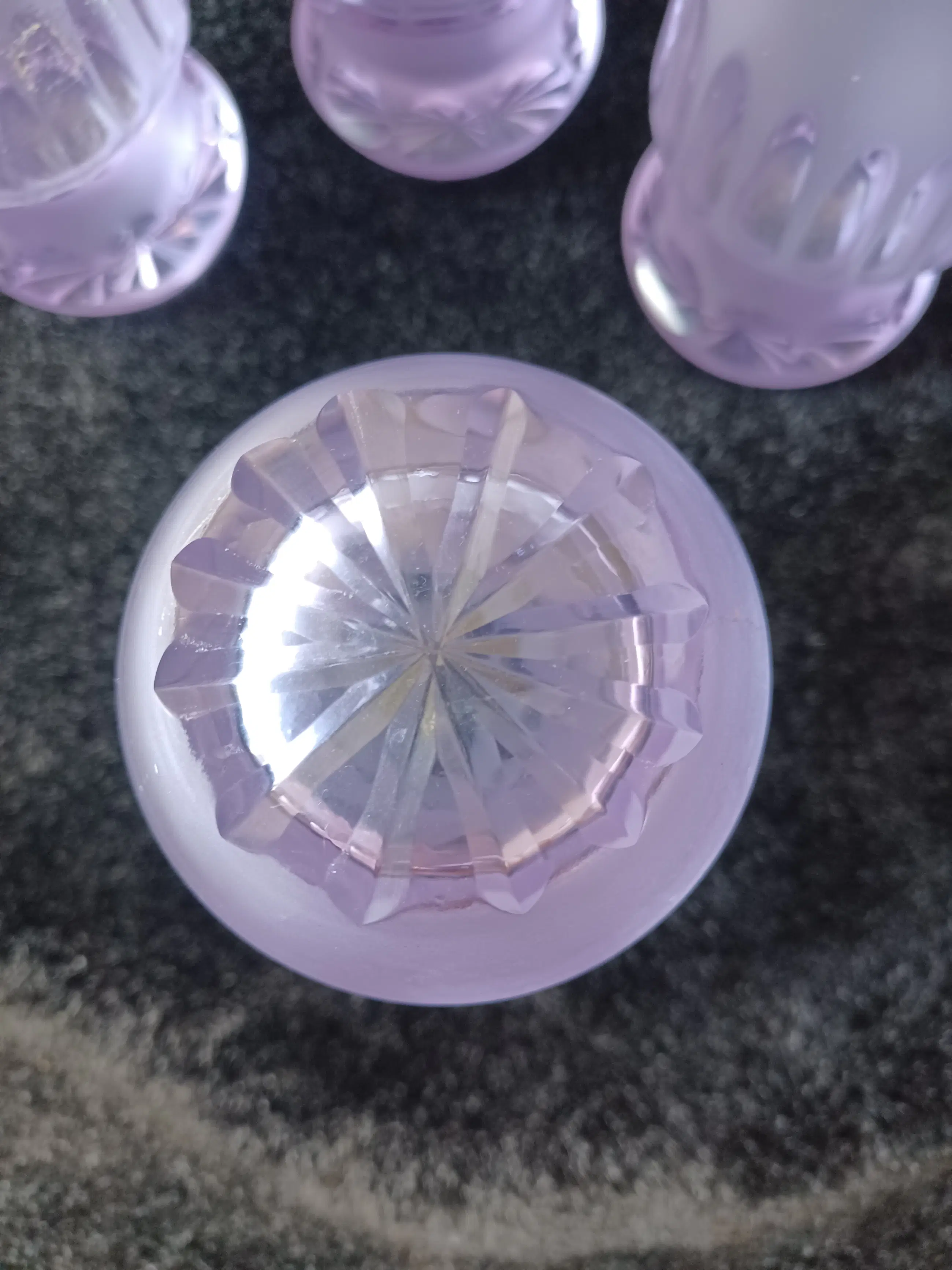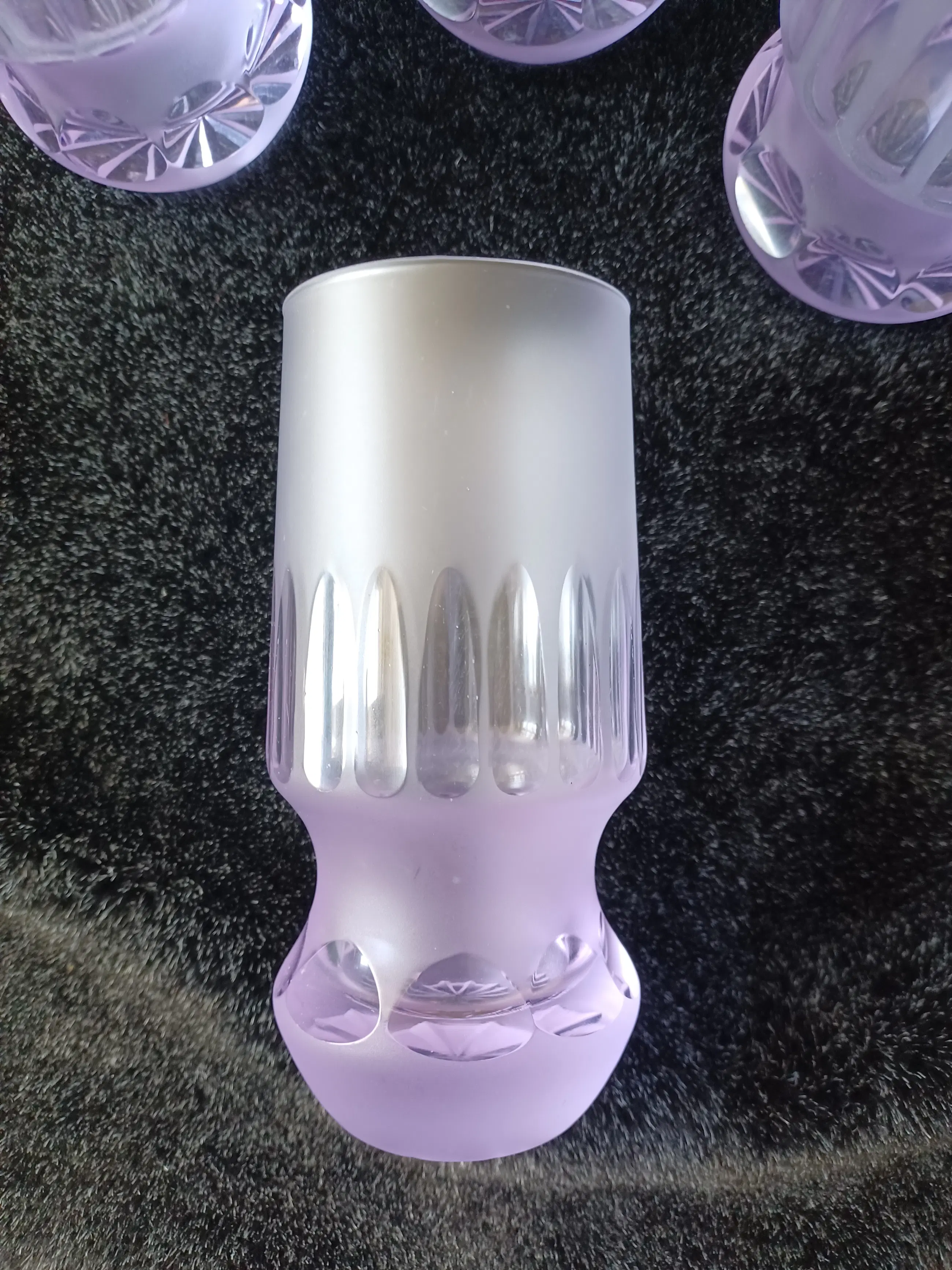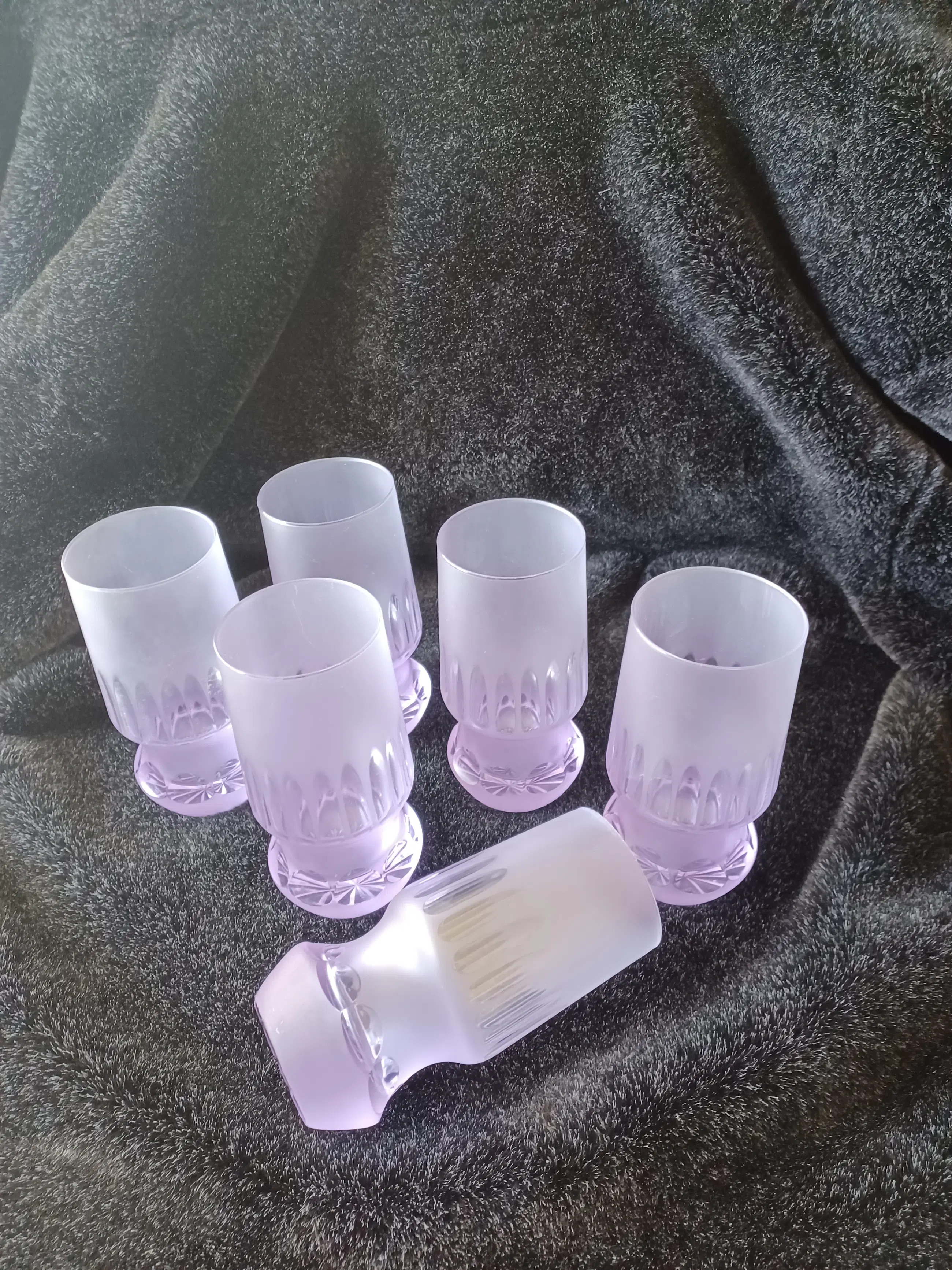 Space age alexandriet/neodymium glazen. 6 stuks longdrink. Jaren 70. Een iconische set glazen die door verschillende lichtinvallen van kleur kunnen veranderen.