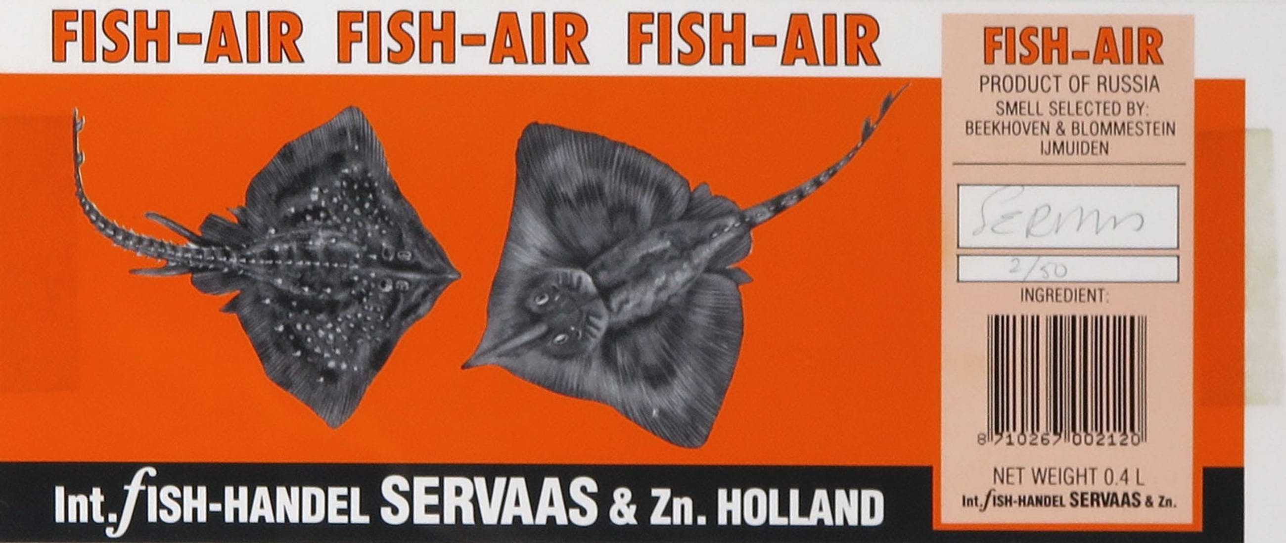 - Ingelijste offset etiket ''Fish Air'', oplage. 2/50. Afmetingen beeld: 10 x 24,5 cm. Afmetingen lijst: 23 x 37 cm.
