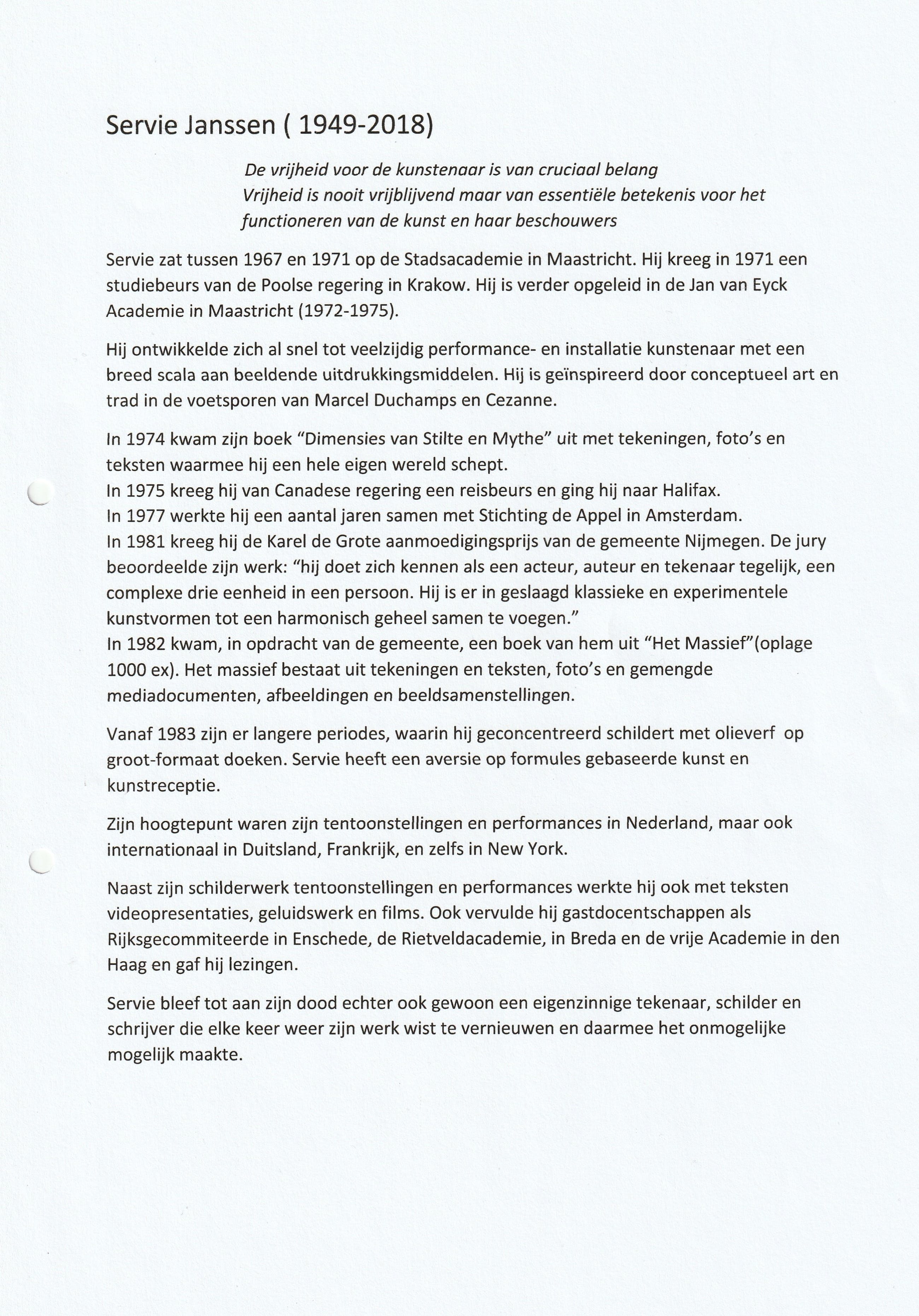 Voor meer informatie over Servie zijn Schilderijen , Tekeningen , Performances , en Boeken mogen wij verwijzen naar onze website www.serviejanssen.nl