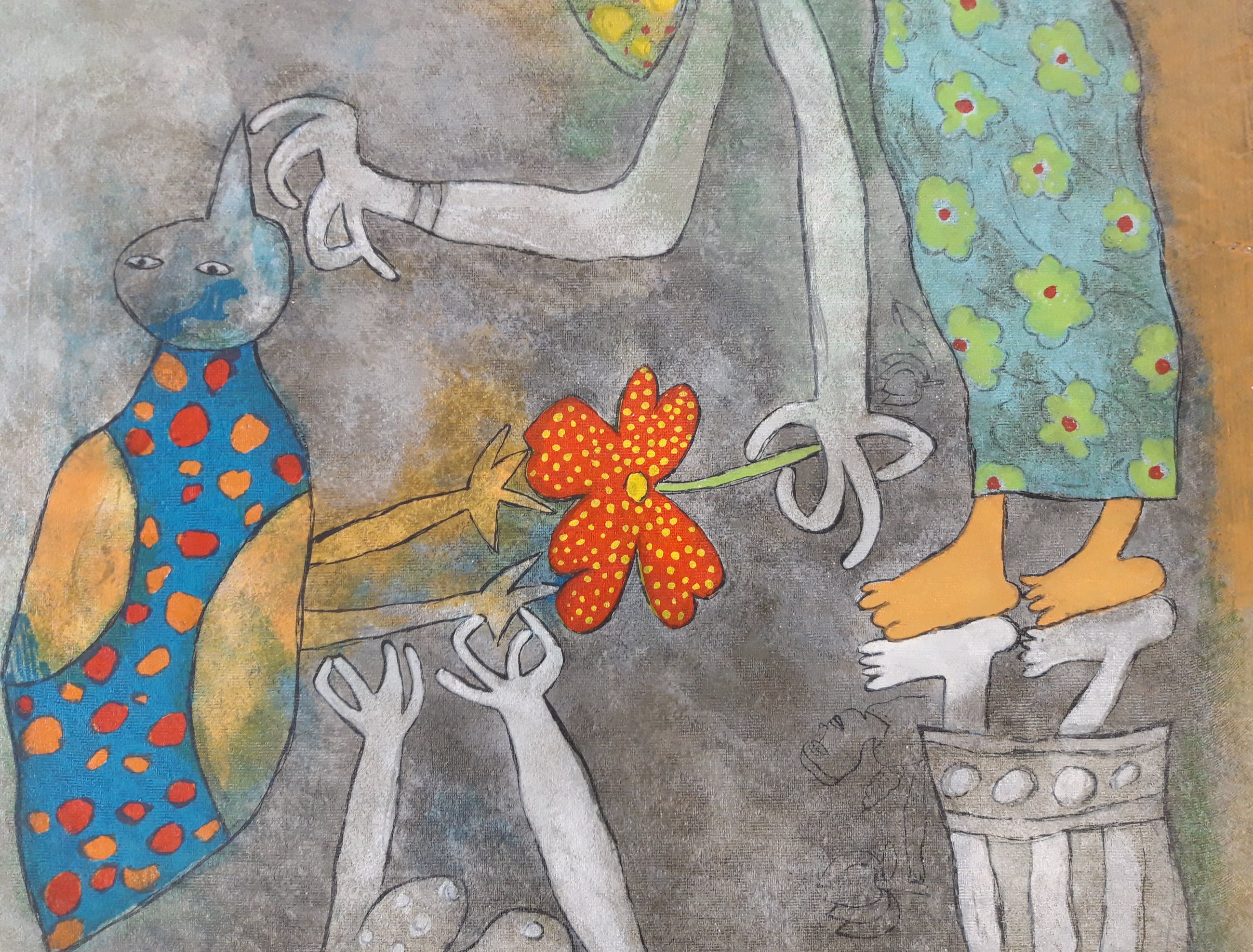 De kunstwerken van Shahid Parvez stralen vrolijkheid uit. Niet vanuit de