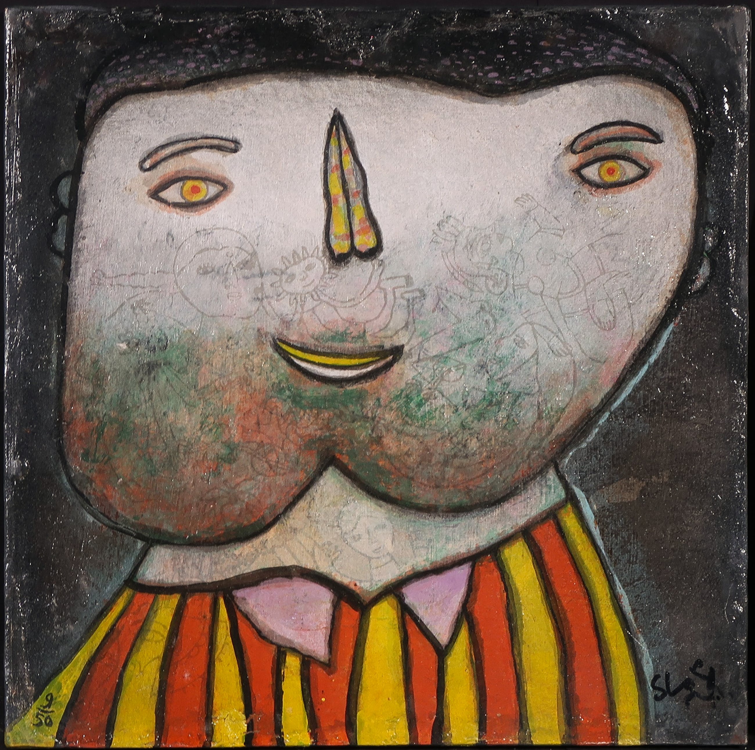 *ingelijst: werk is niet achter glas ingelijst maar bevestigd op spieraam (zie foto verso)