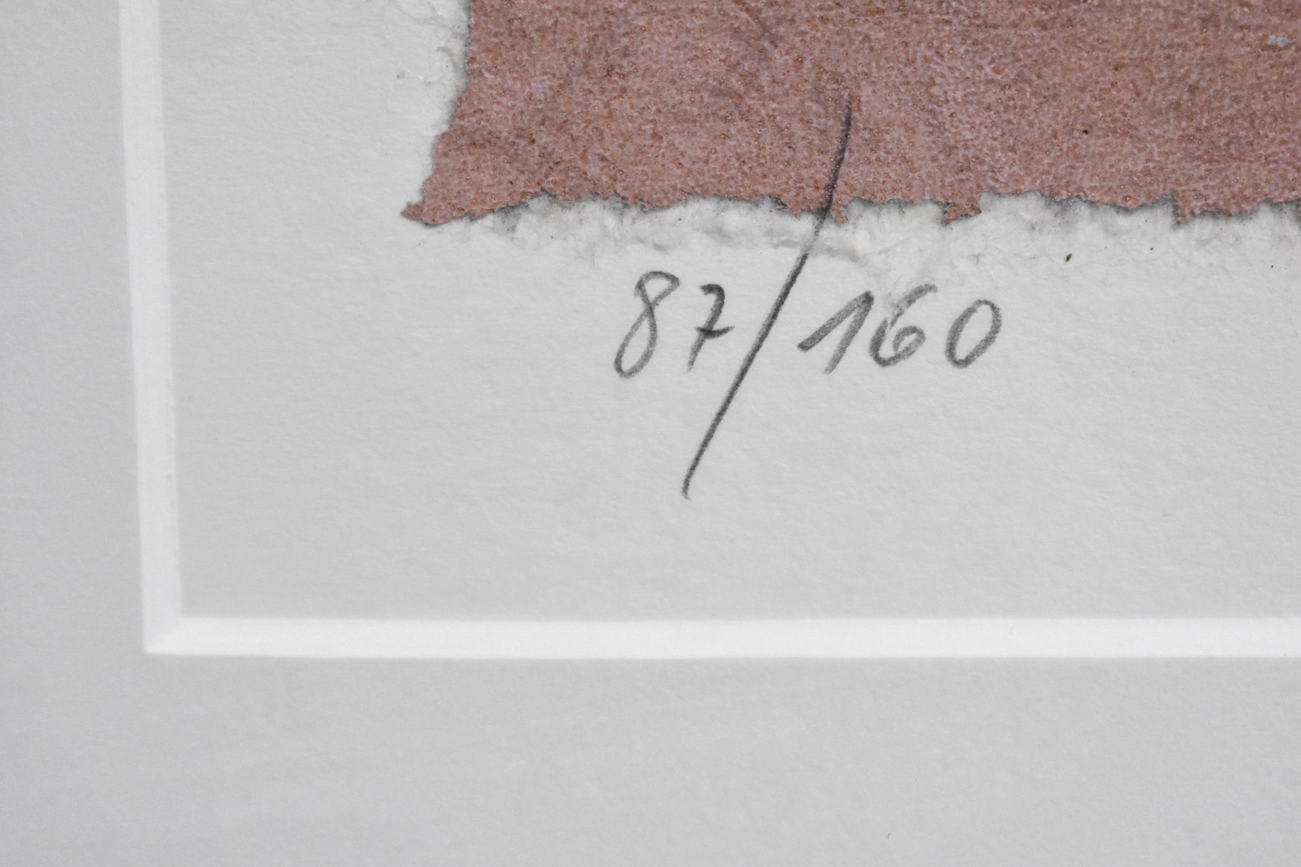 Aangezien het werk uit een bedrijfscollectie komt, kan de lijst wat gebruikssporen overeenkomstig met de leeftijd tonen, deze zijn eenvoudig te verwijderen door de houten lijst licht op te schuren.