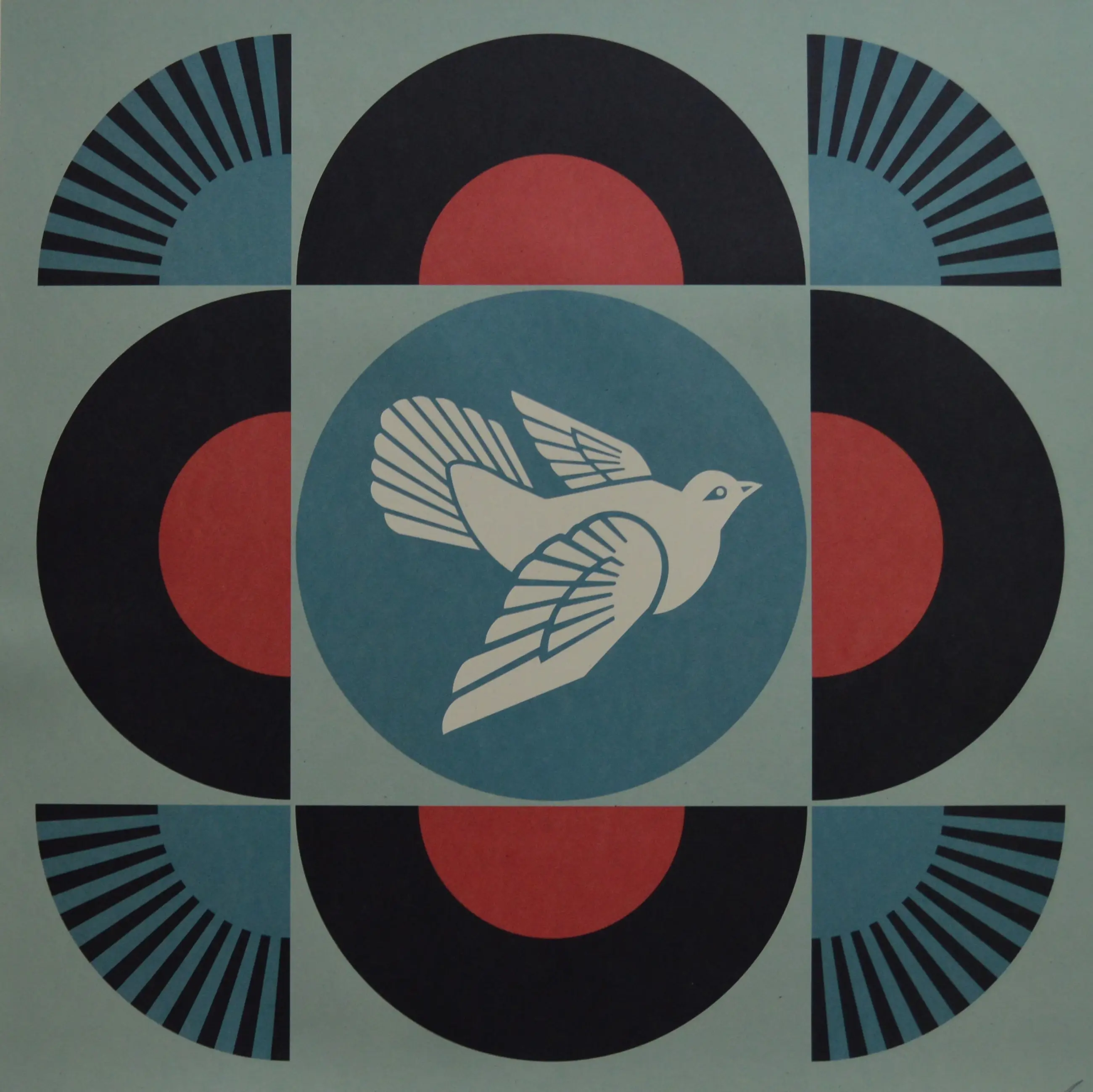 Offset lithografie van Shepard Fairey uit de serie van 3: Geometric Dove. Vredesduif.