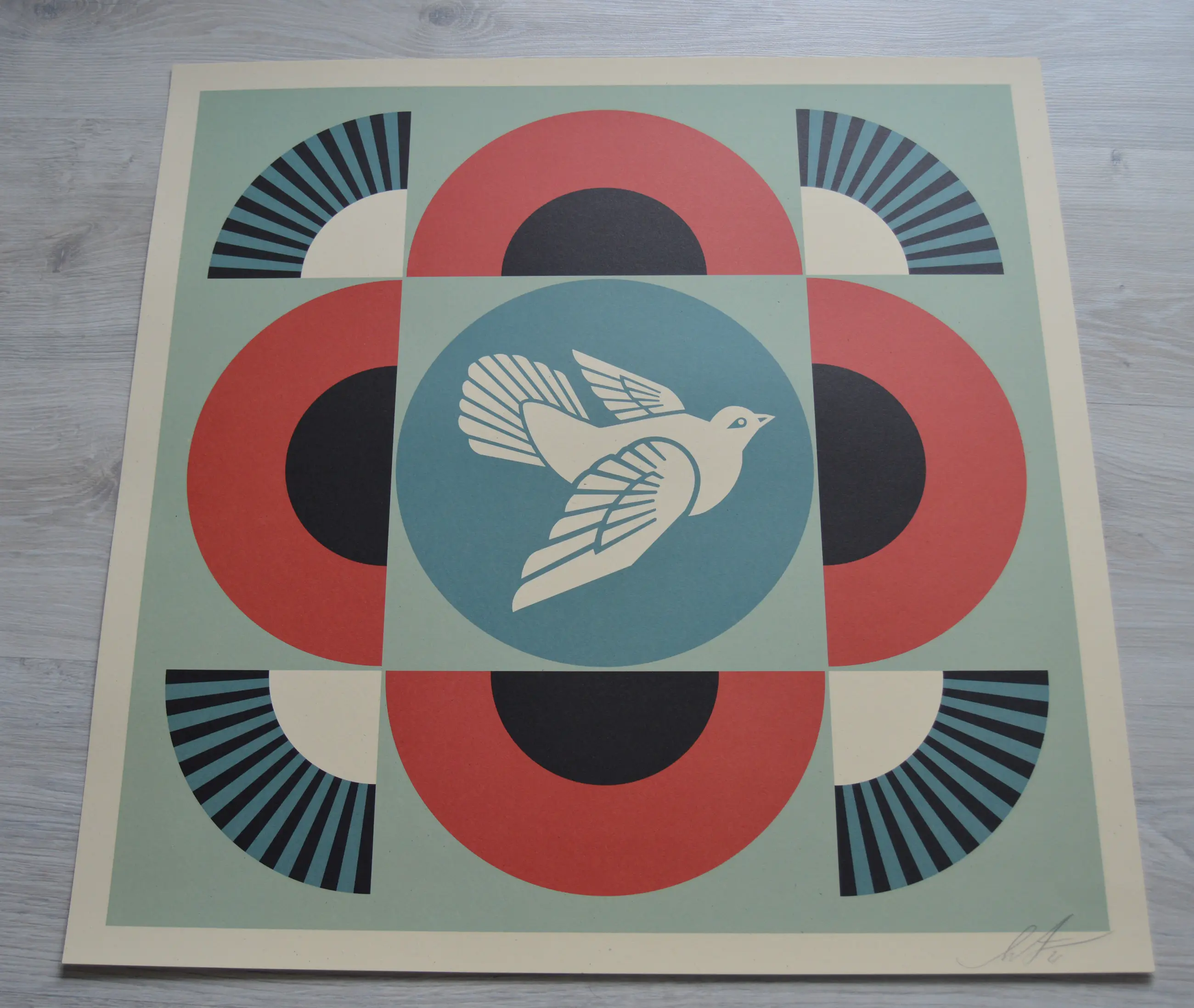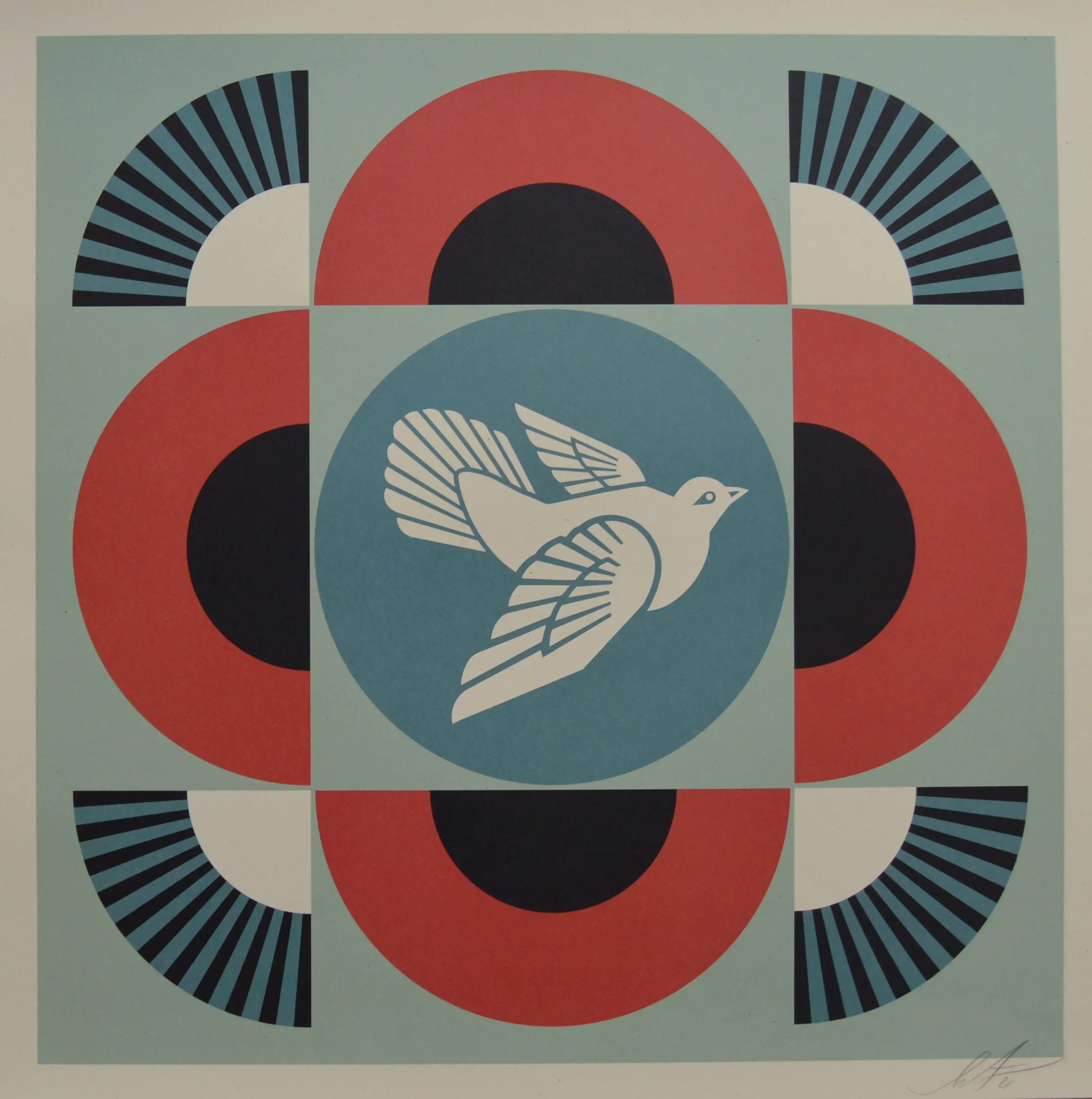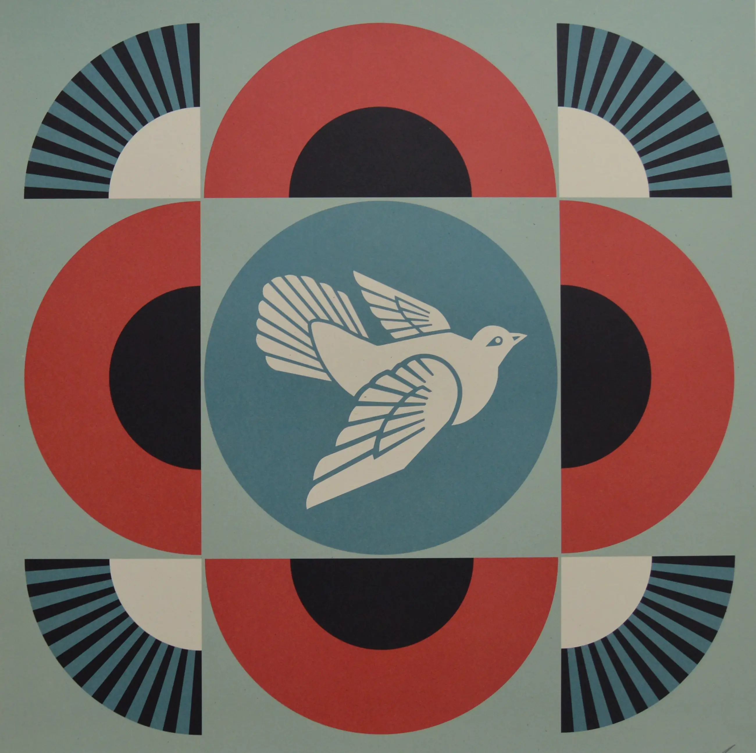 Offset lithografie van Shepard Fairey uit de serie van: Geometric Dove.