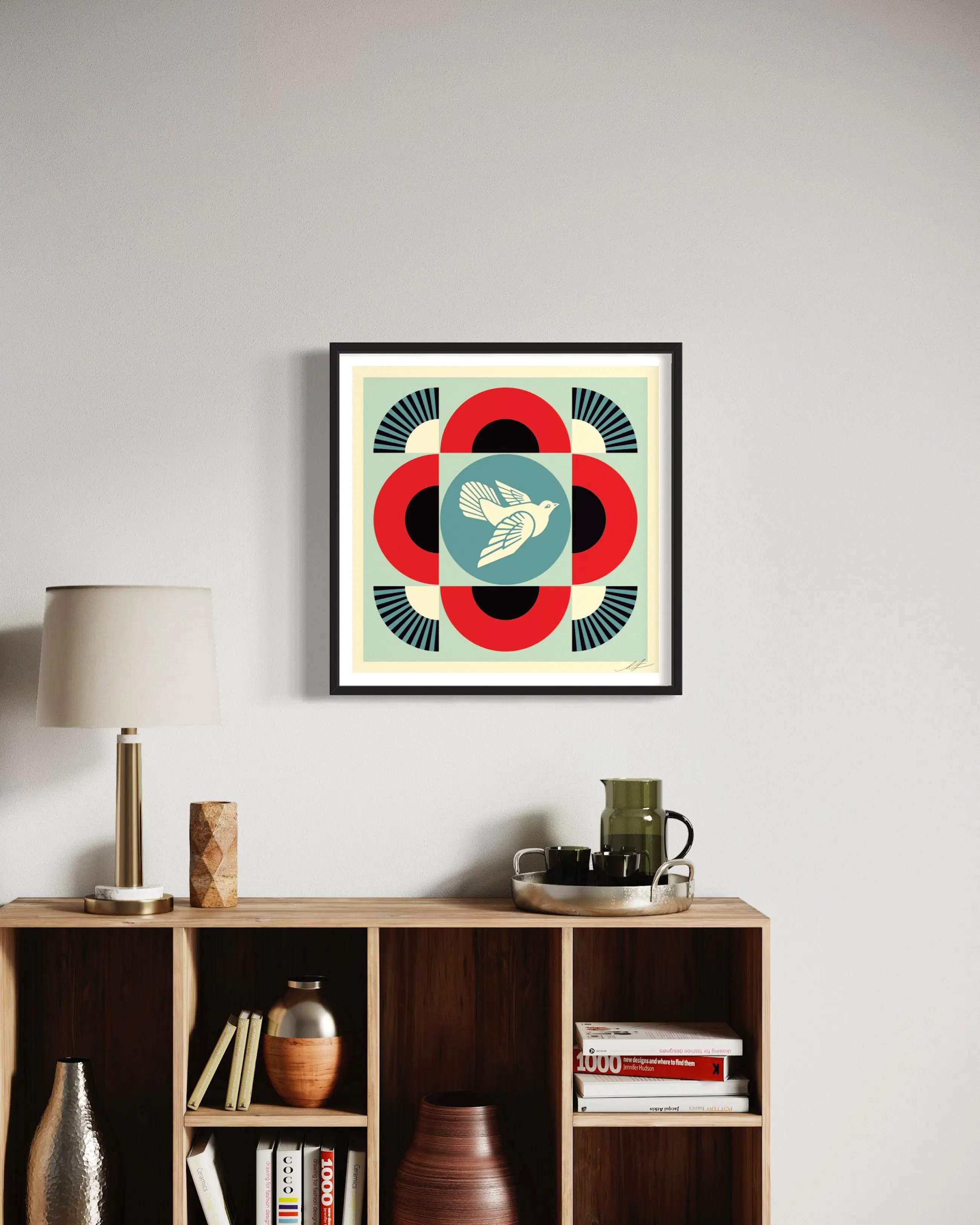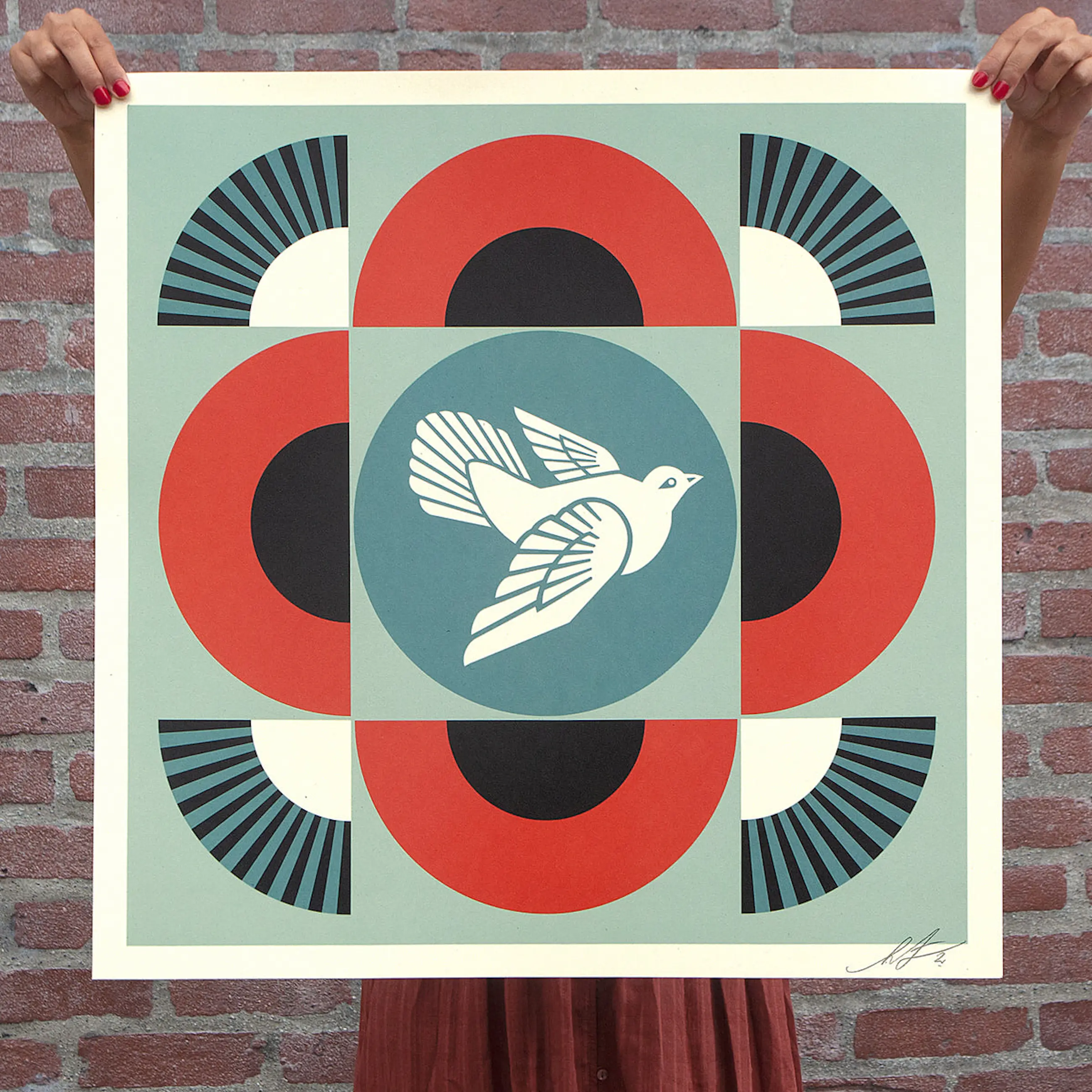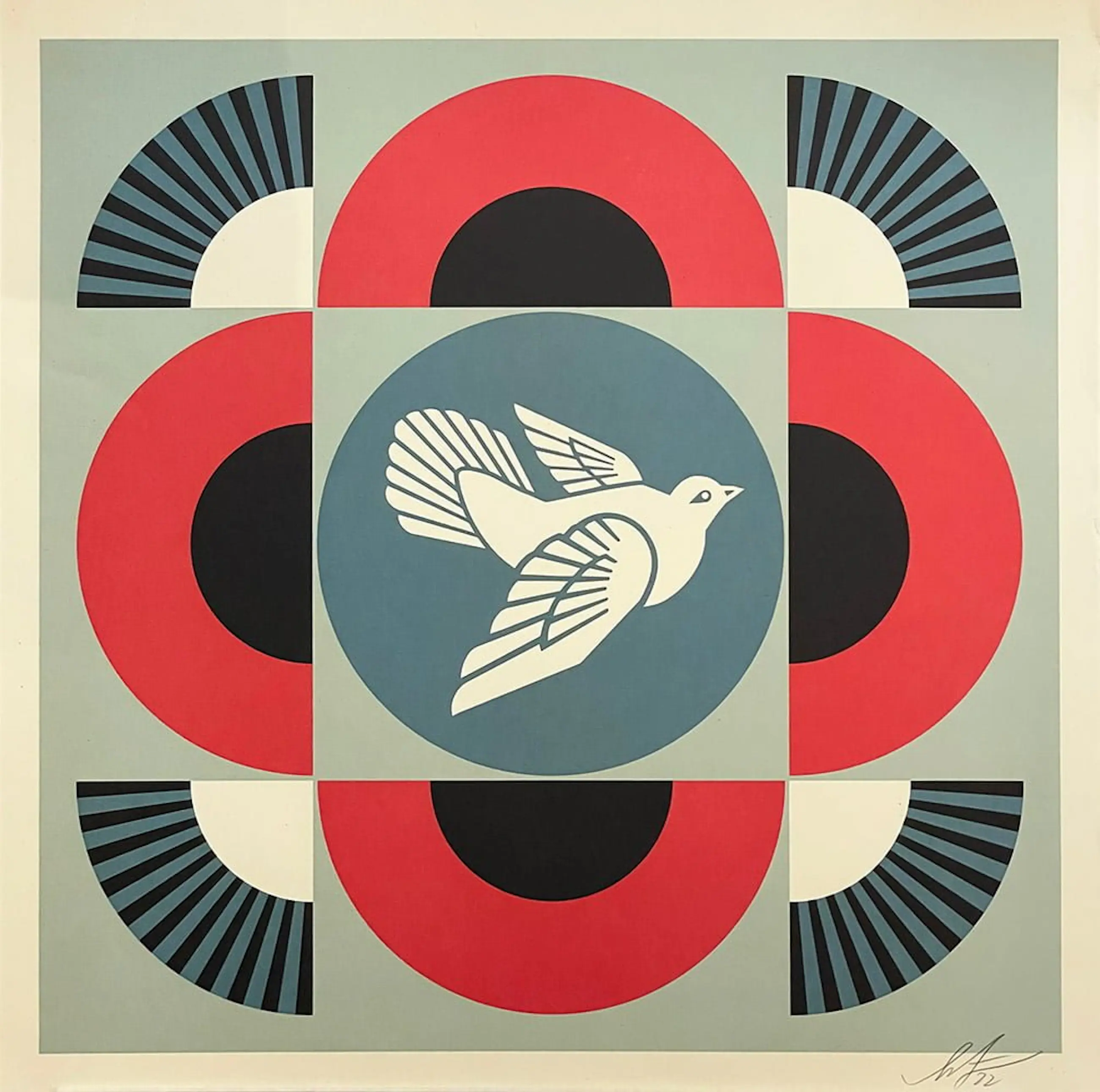 Shepard Fairey - GEOMETRIC DOVE RED Signed Lithograph - Verkocht