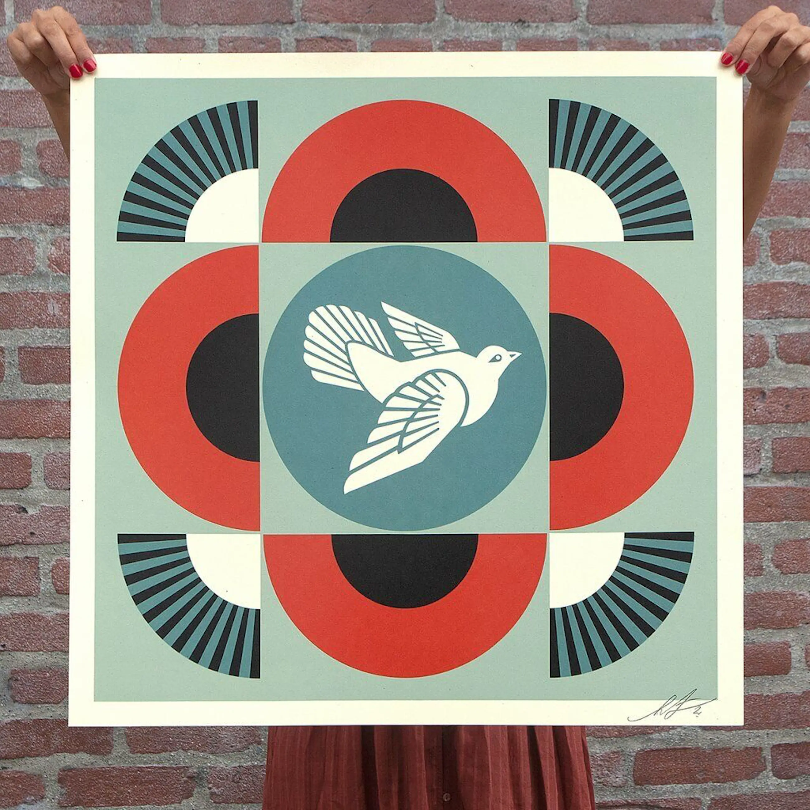 Shepard Fairey - GEOMETRIC DOVE -RED- SIGNED OFFSET LITHOGRAPH - Verkocht