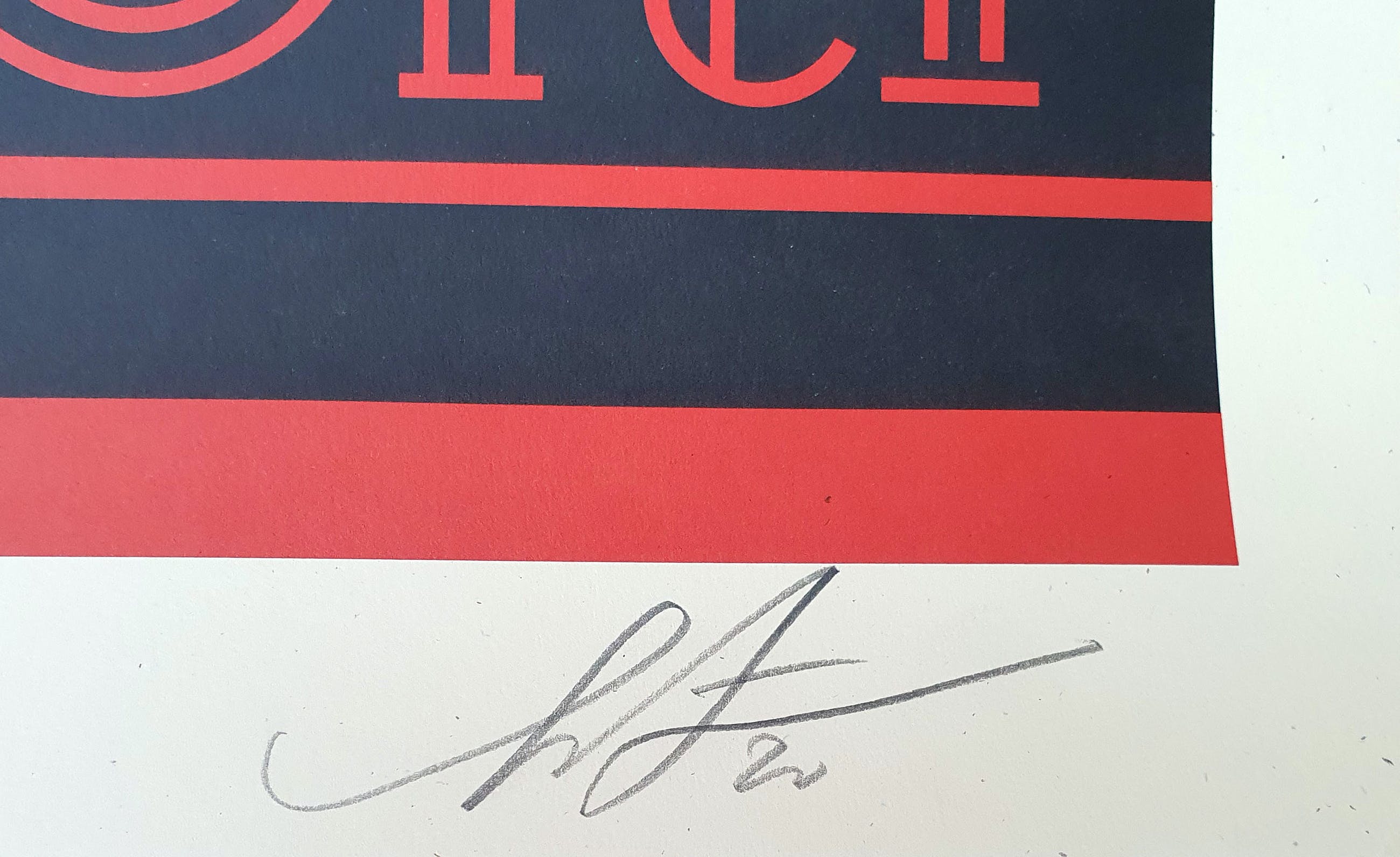 Offset litho op cream speckle tone papier. Gesigneerd en gedateerd rechtsonder door Shepard Fairey.