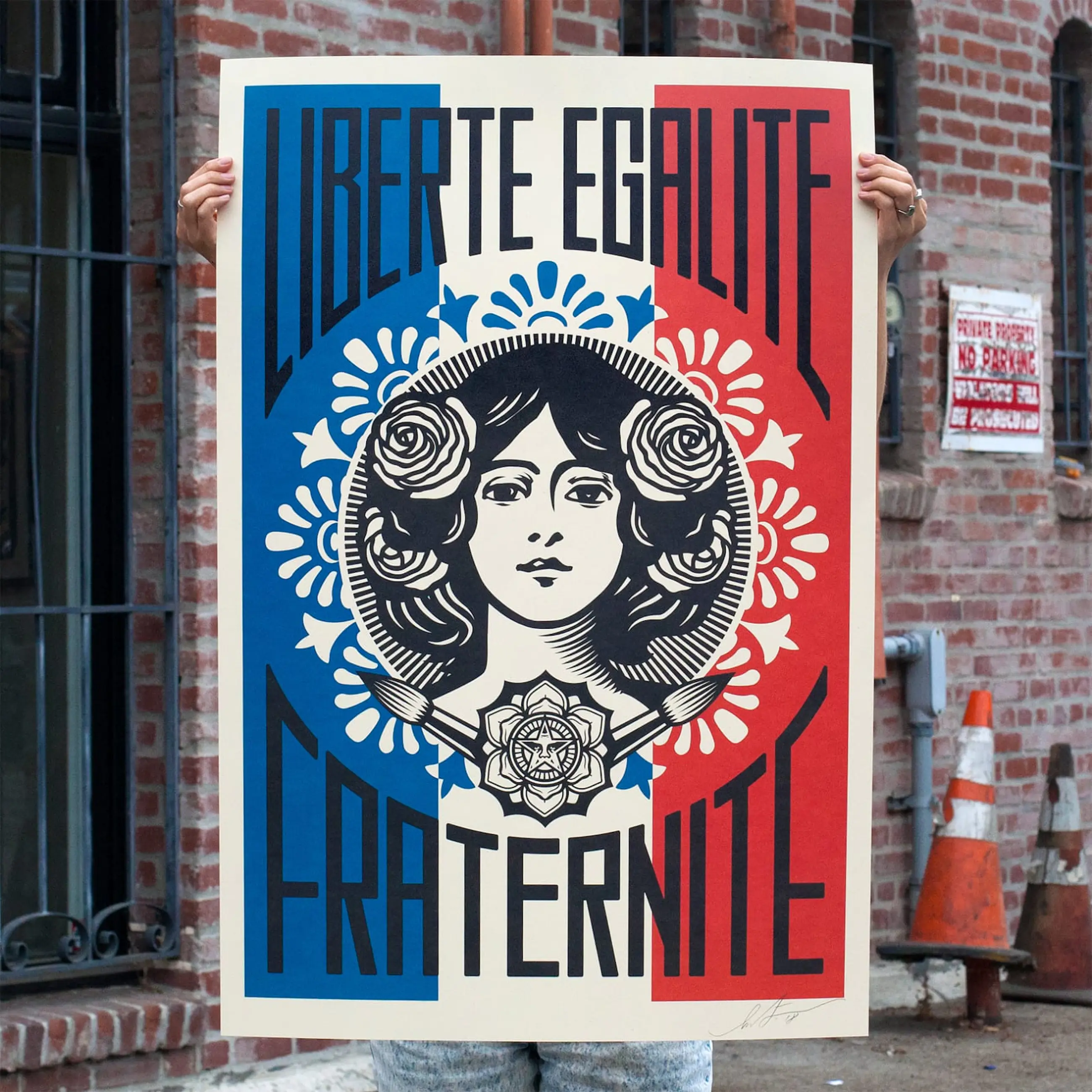 I created the Liberté, Egalité, Fraternité art piece to show support for France after the Nov. 13, 2015 terror attacks which happened just before the time of my Earth Crisis installation at the Eiffel Tower. The piece was very important to me as a symbol of unity during a dark, tragic moment. I was moved that the art and the message was inspiring for so many people in France, and beyond, and it has remained one of my most requested images since it was first created. I’m excited to be releasing it now as an open edition offset print, accessible for all.