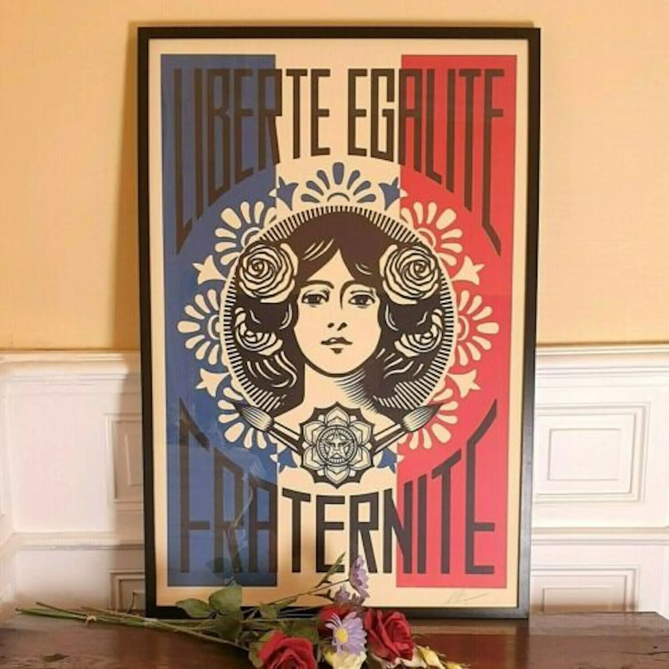 "I created the Liberté, Egalité, Fraternité art piece to show support for France after the Nov. 13, 2015 terror attacks which happened just before the time of my Earth Crisis installation at the Eiffel Tower. The piece was very important to me as a symbol of unity during a dark, tragic moment. I was moved that the art and the message was inspiring for so many people in France, and beyond, and it has remained one of my most requested images since it was first created. I’m excited to be releasing it now as an open edition offset print, accessible for all."