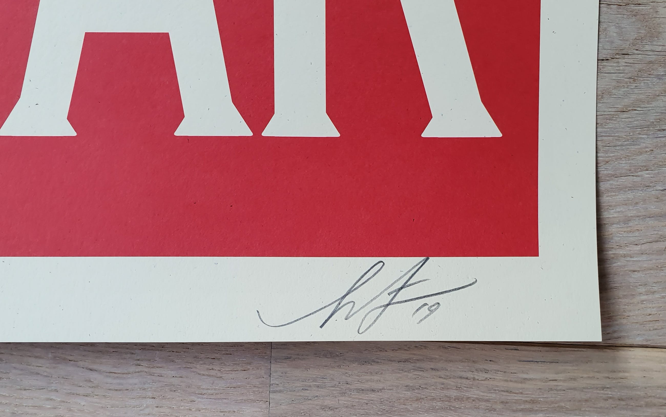 Offset litho op cream speckle tone papier. Gesigneerd en gedateerd rechtsonder door Shepard Fairey.
