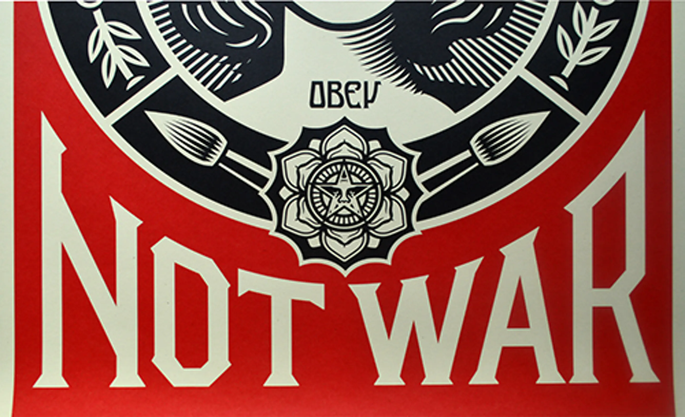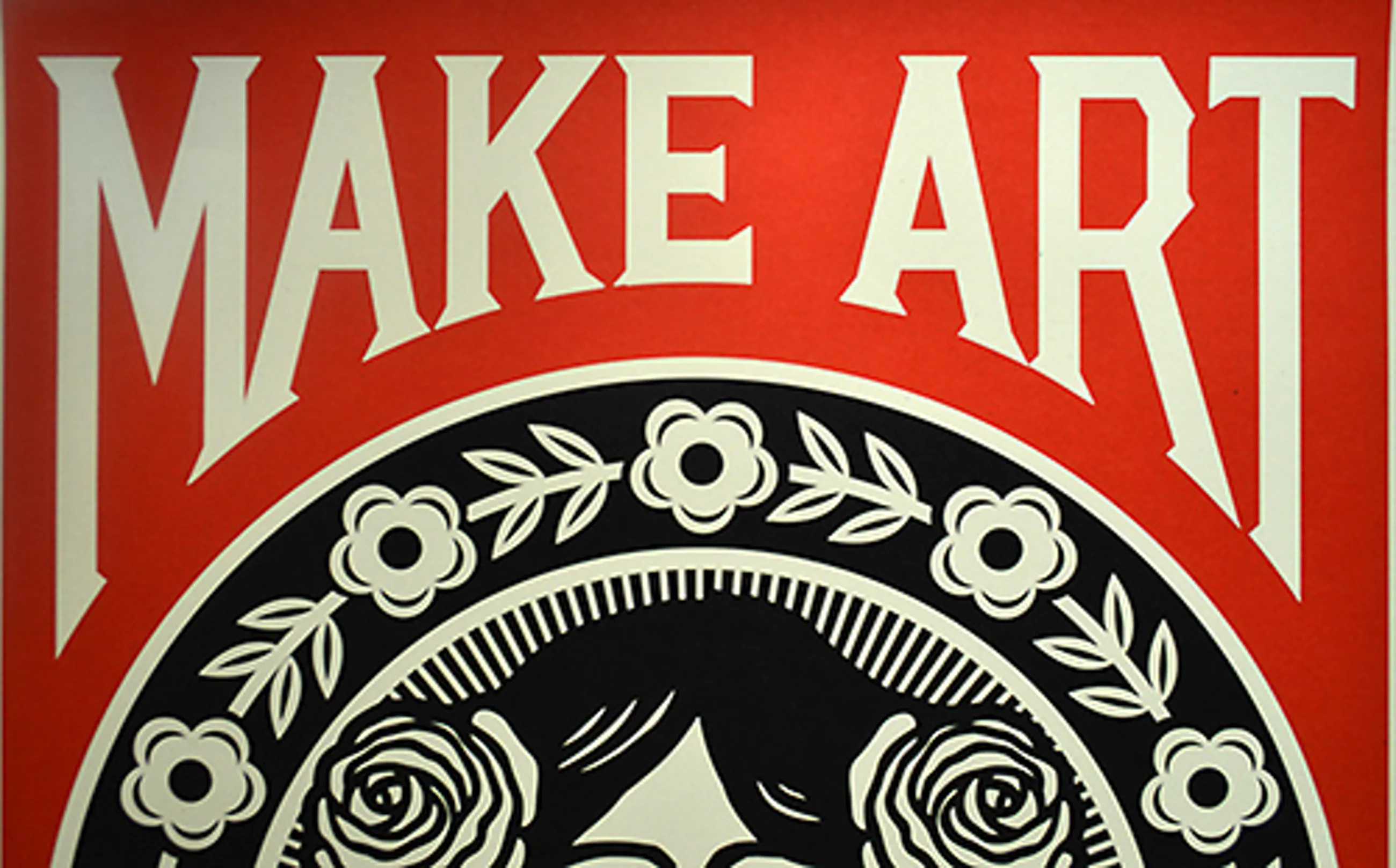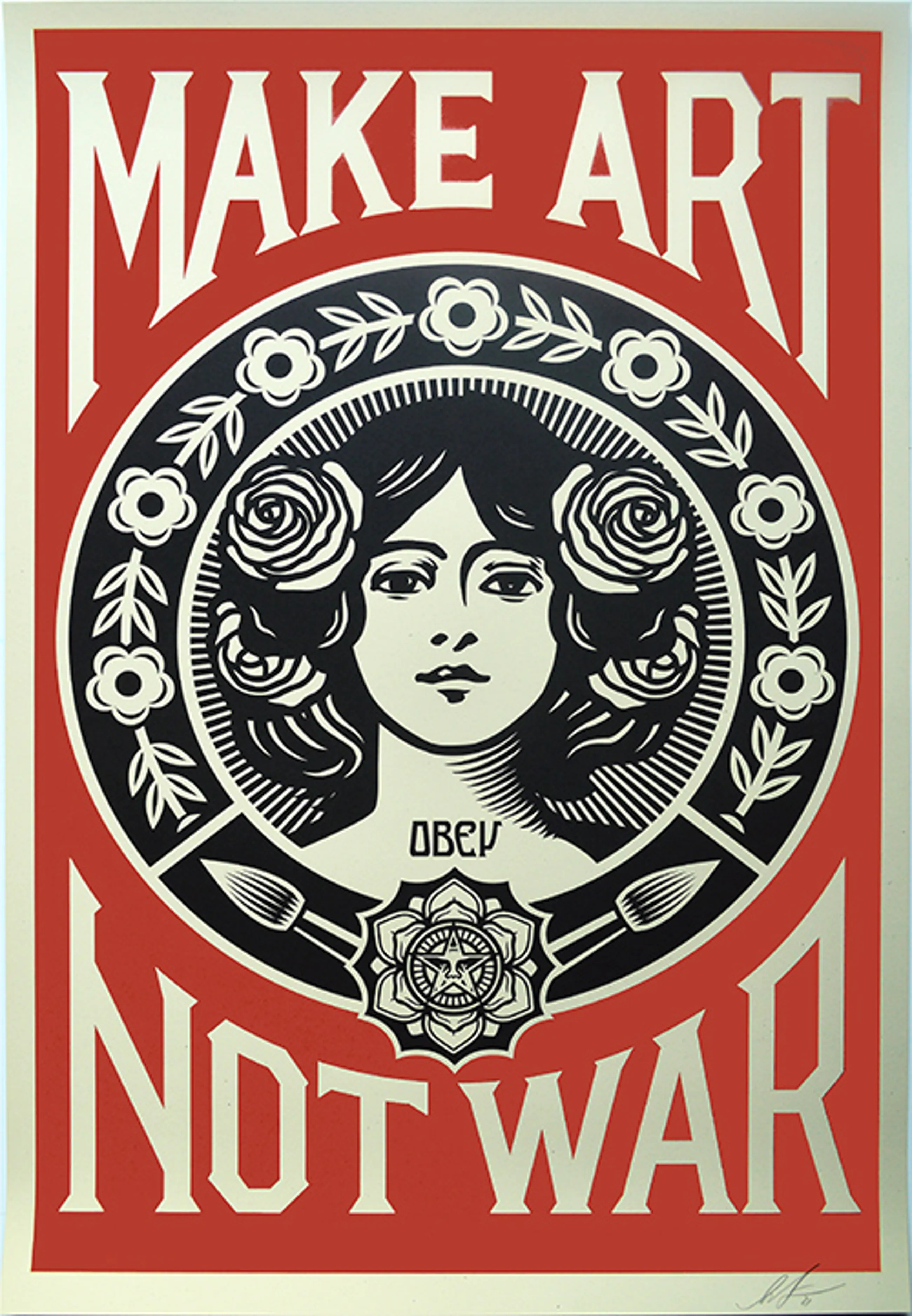 Shepard Fairey (OBEY) Make Art Not War Original lithograph offset print on heavy cream-colored tone paper by Shepard Fairey /OBEY. With vibrant colors. (No unauthorized cheap reprint on poster paper or similar from China or elsewhere)