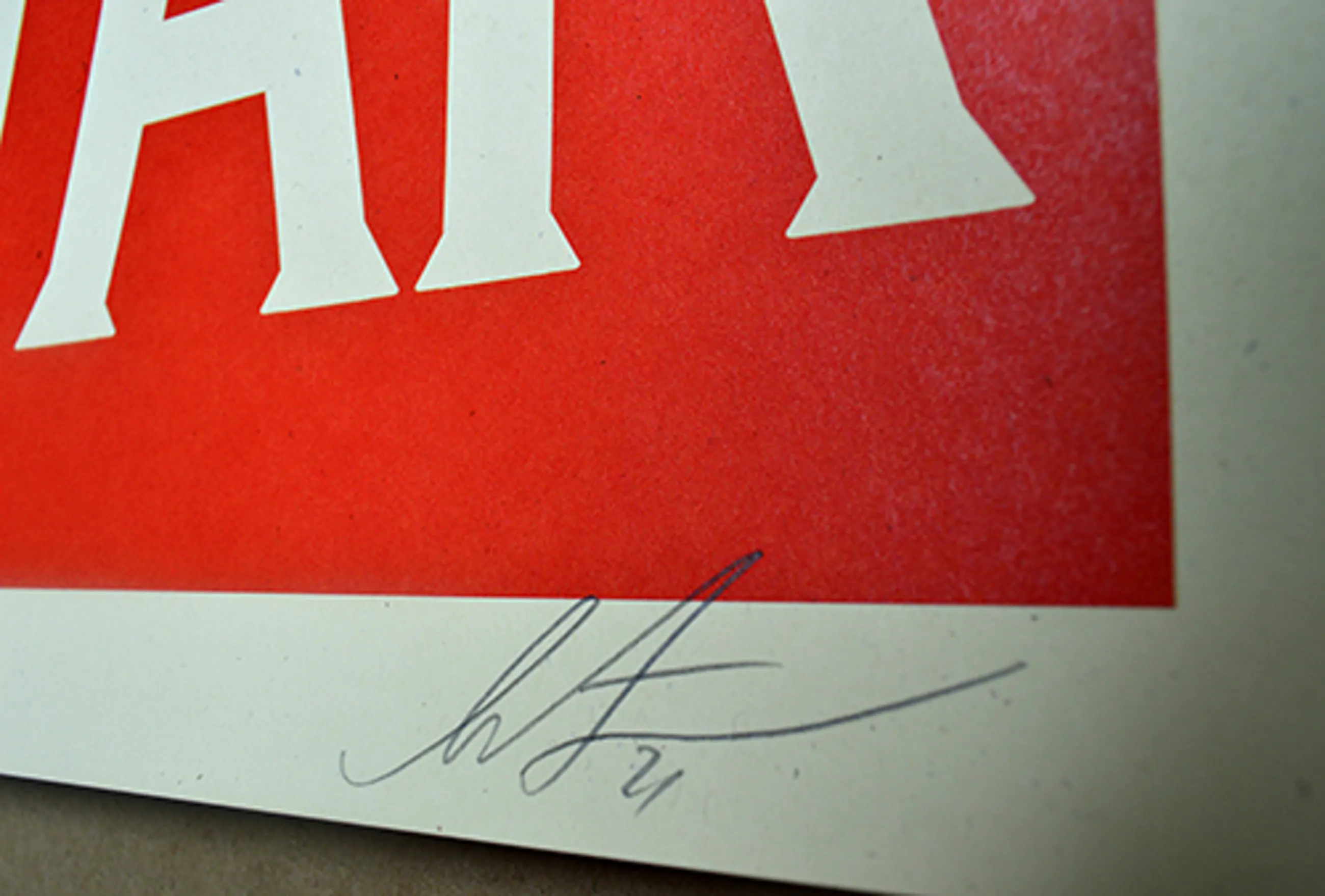 Dated and signed by hand by Shepard Fairey Open edition Size approx. 61 x 91 cm.