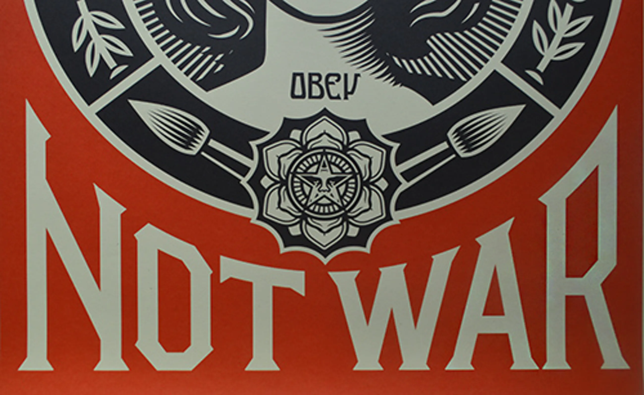 Shepard Fairey (OBEY) Make Art Not War Original lithograph offset print on heavy cream-colored tone paper by Shepard Fairey /OBEY. With vibrant colors. (No unauthorized cheap reprint on poster paper or similar from China or elsewhere)