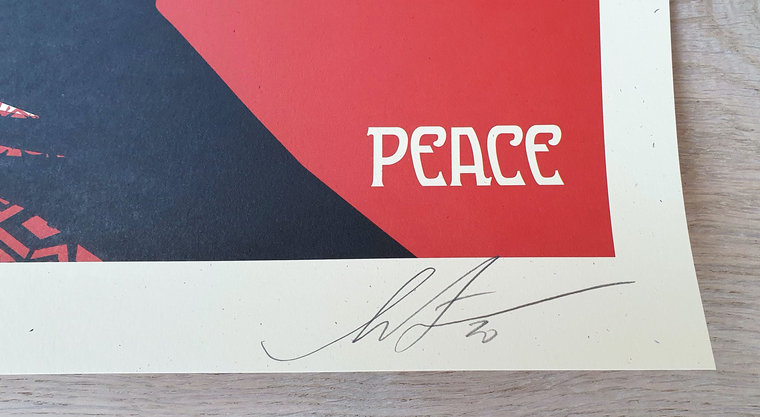 61 x 91 cm.Shepard Fairey is een Amerikaanse street artist, grafisch ontwerper, activist en illustrator die opgekomen is vanuit de skate board scene. Hij is bekend geworden met zijn Andre the Giant Has a Posse” (…OBEY…) sticker campagne.