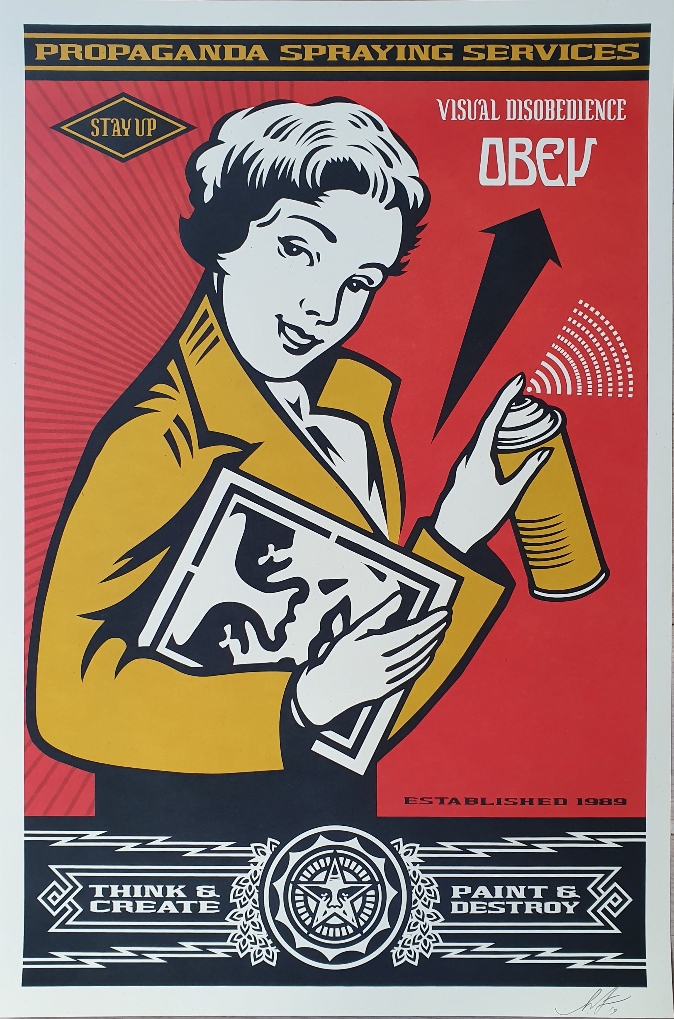 61 x 91 cm.Shepard Fairey is een Amerikaanse street artist, grafisch ontwerper, activist en illustrator die opgekomen is vanuit de skate board scene. Hij is bekend geworden met zijn Andre the Giant Has a Posse” (…OBEY…) sticker campagne.