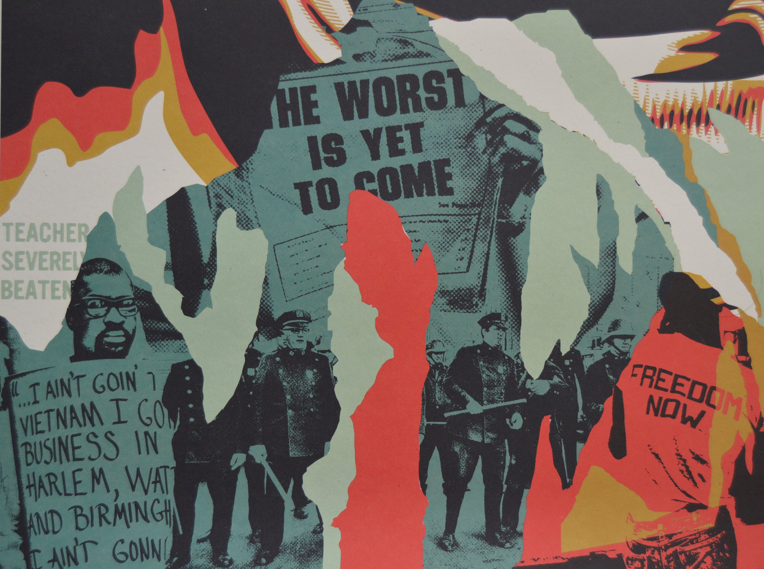 Deze prachtige offset is tot stand gekomen door een samenwerking met fotograaf Steve Schapiro, die veel van de belangrijke burgerrechtenprotesten in de jaren zestig documenteerde en Shepard Fairey.