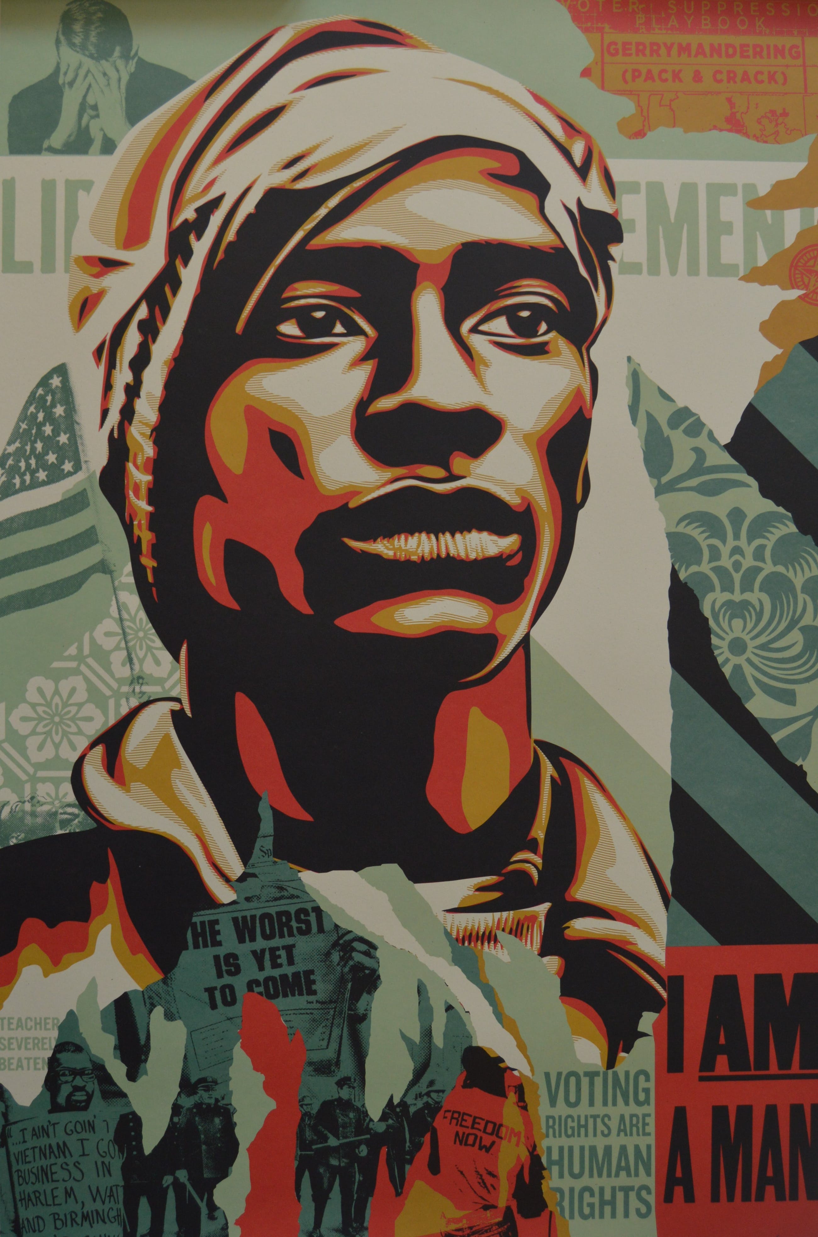 Stemrecht en rassengelijkheid waren de focus van een massabeweging naar een meer rechtvaardige samenleving in de jaren '60. Helaas heeft het verraderlijke racisme, dat nooit is verdwenen, plaatsgemaakt voor meer openlijk racisme en de onderdrukking van kiezers, vaak gericht op mensen met kleur en studenten. Democratie moet voor iedereen werken. (Fairey)