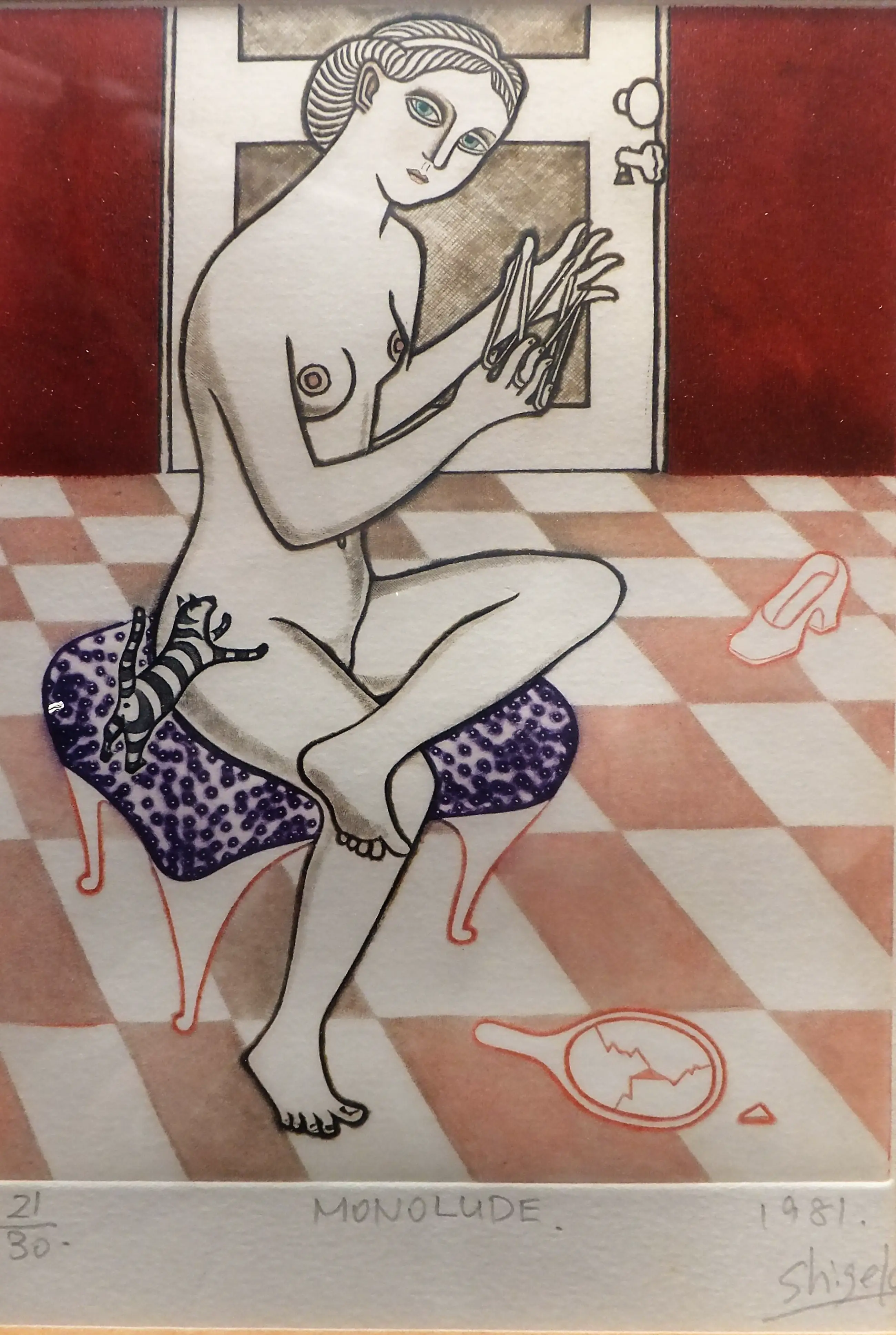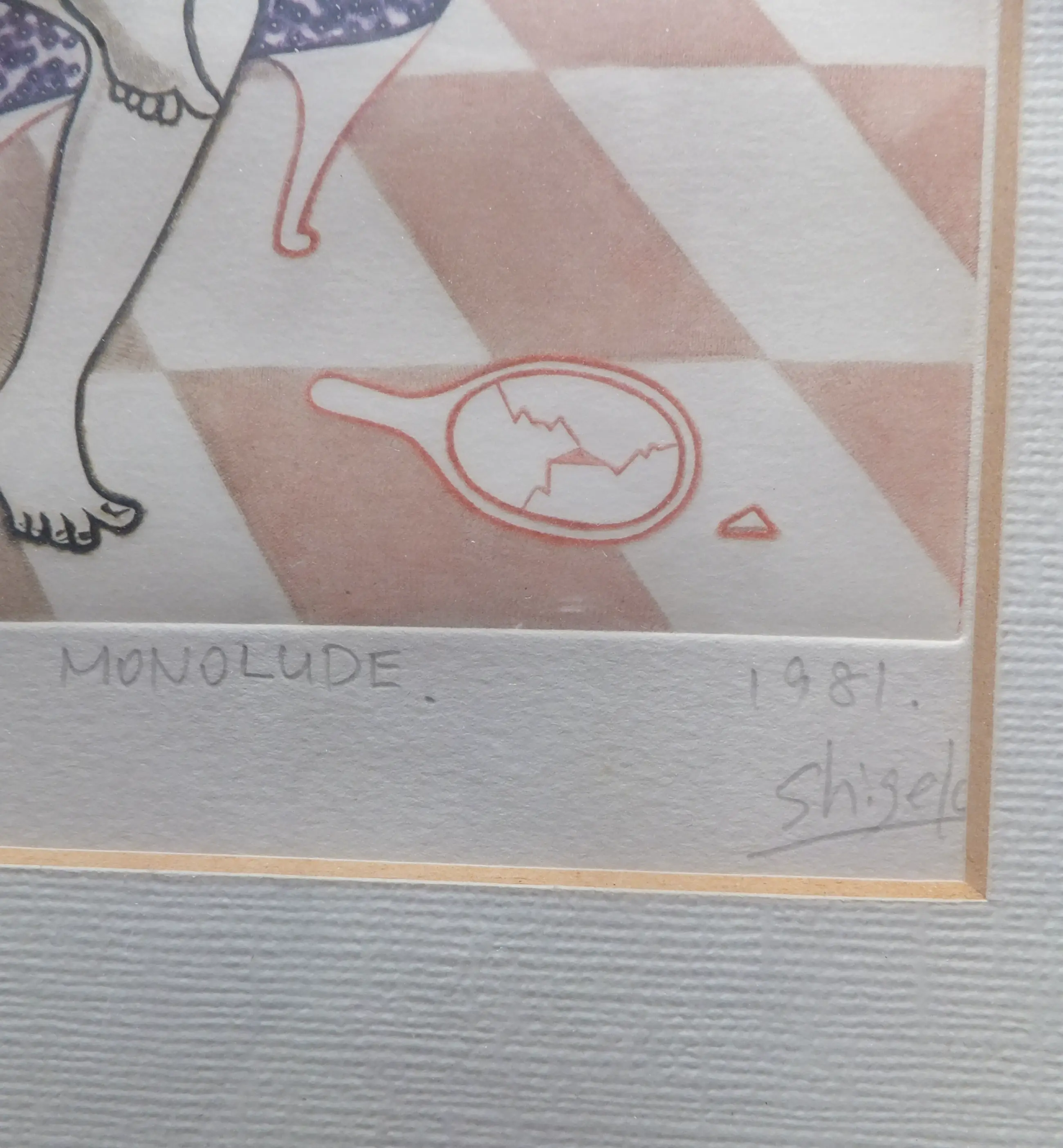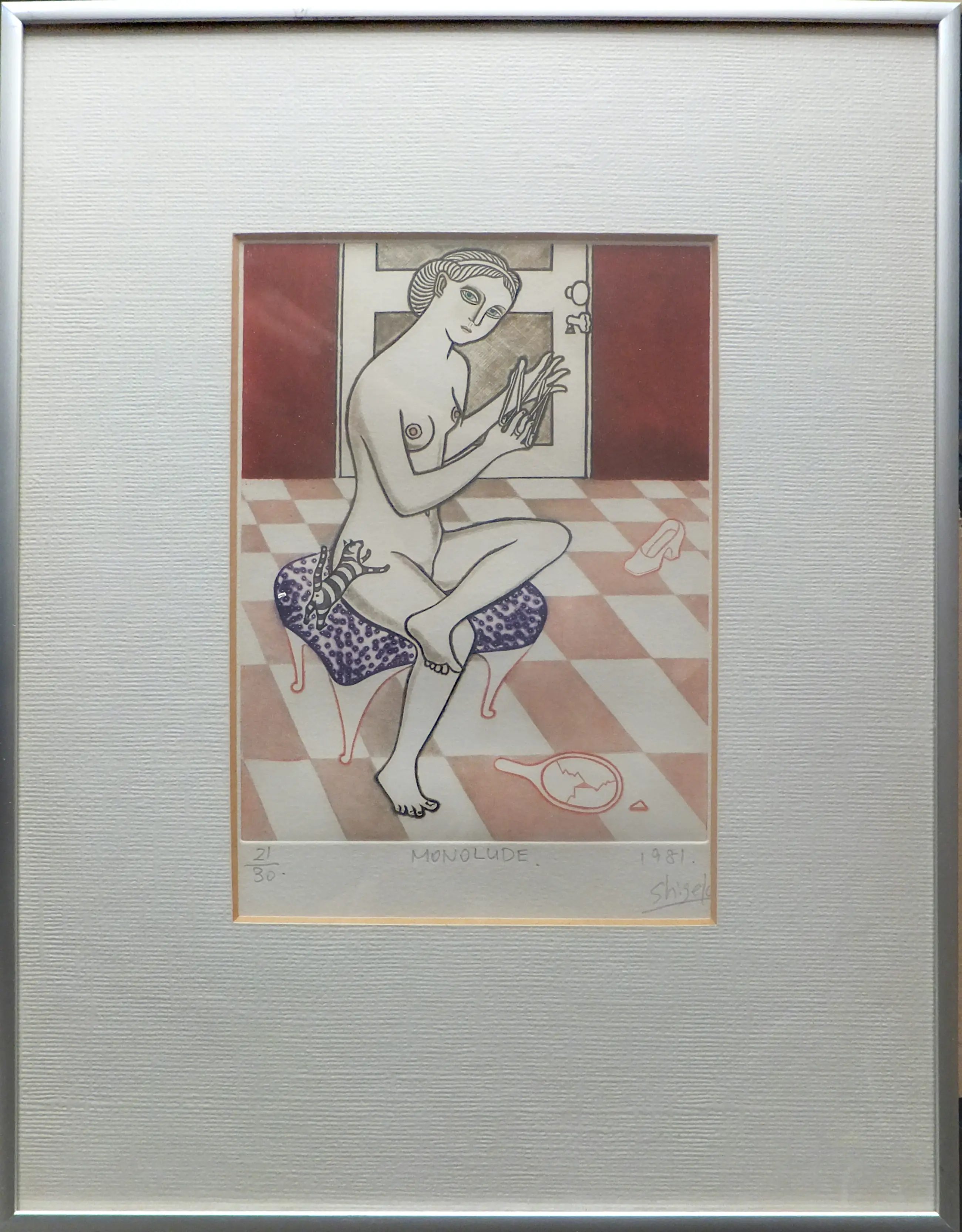 Shigeki (handtekening) was opgeleid in Japan als graficus en beeldhouwer. Hij heeft veel gewerkt in Parijs en geëxposeerd over de gehele wereld met zijn bijzondere soft erotische werk, De laatste jaren was hij een beroemd graficus in Japan.