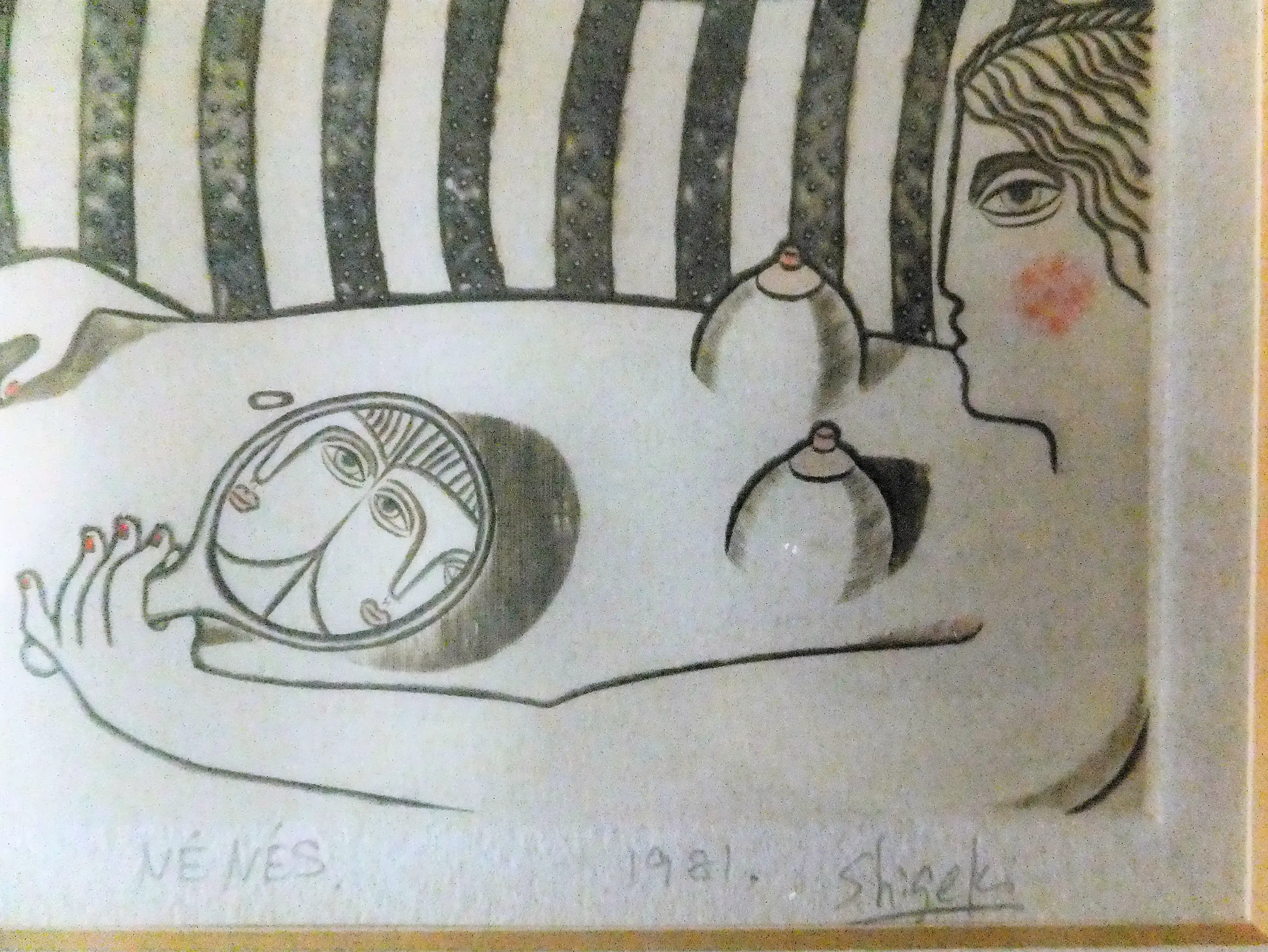 Shigeki (handtekening) was opgeleid in Japan als graficus en beeldhouwer. Hij heeft veel gewerkt in Parijs en geëxposeerd over de gehele wereld met zijn bijzondere soft erotische werk, De laatste jaren was hij een beroemd graficus in Japan.