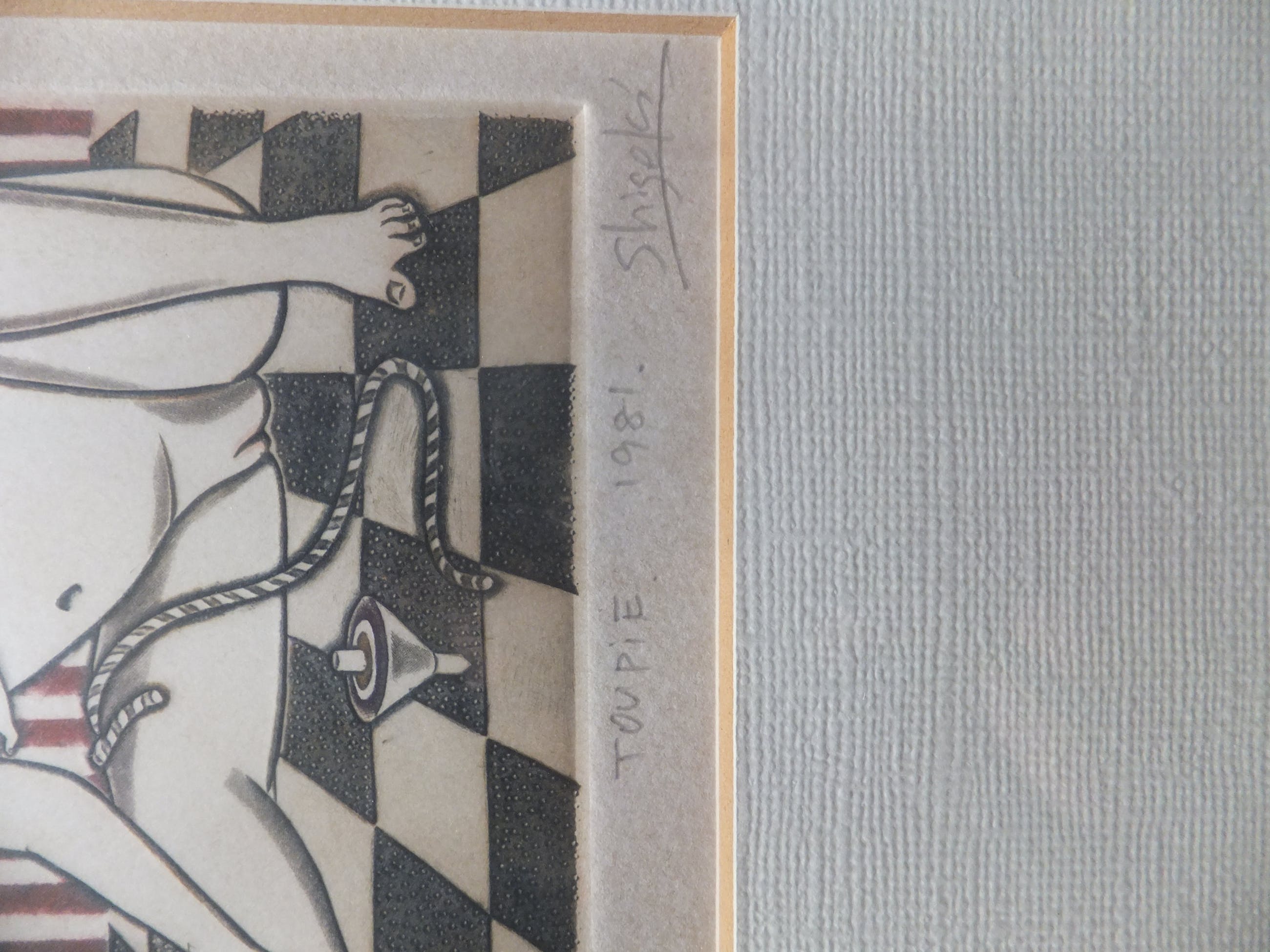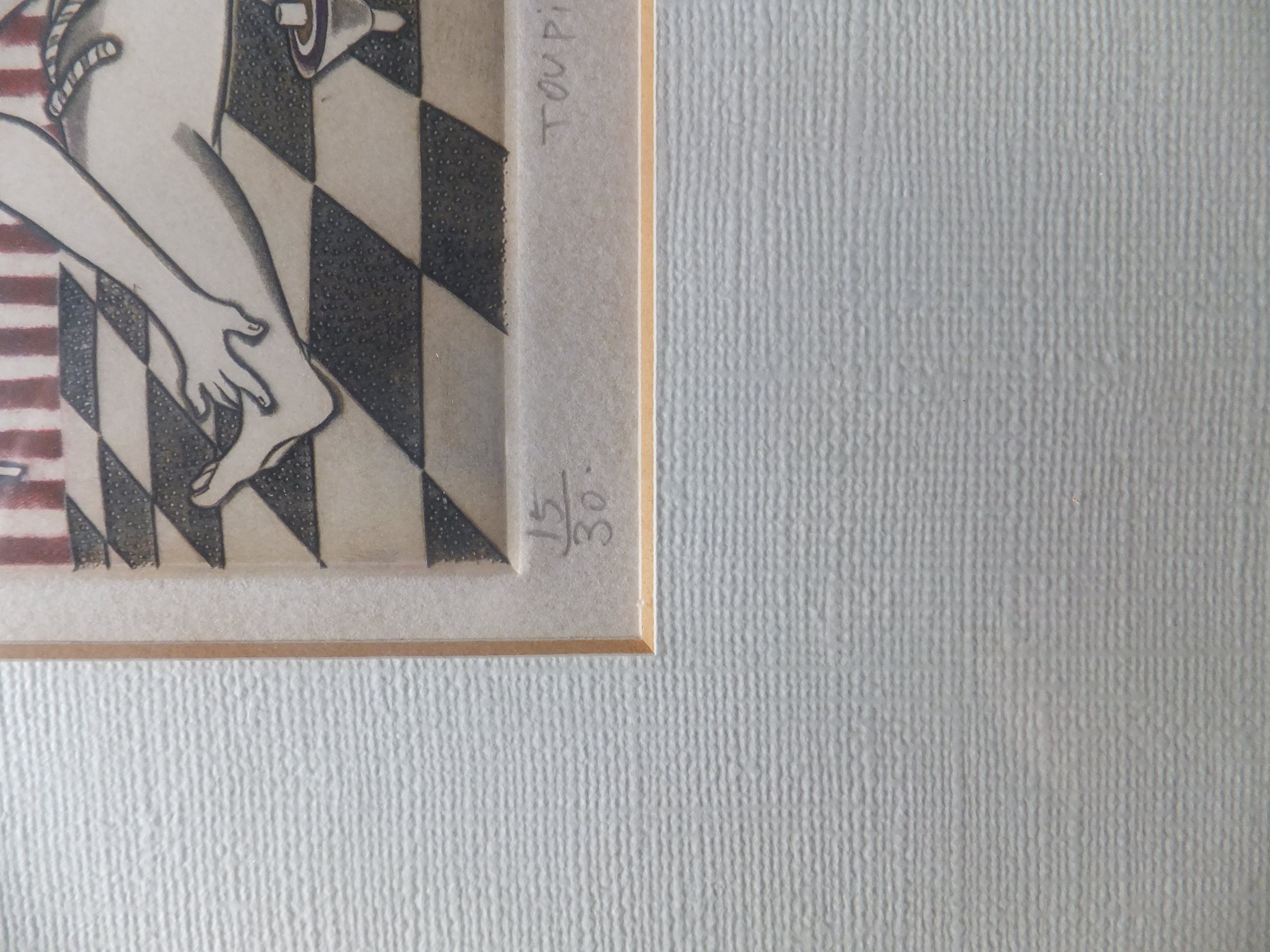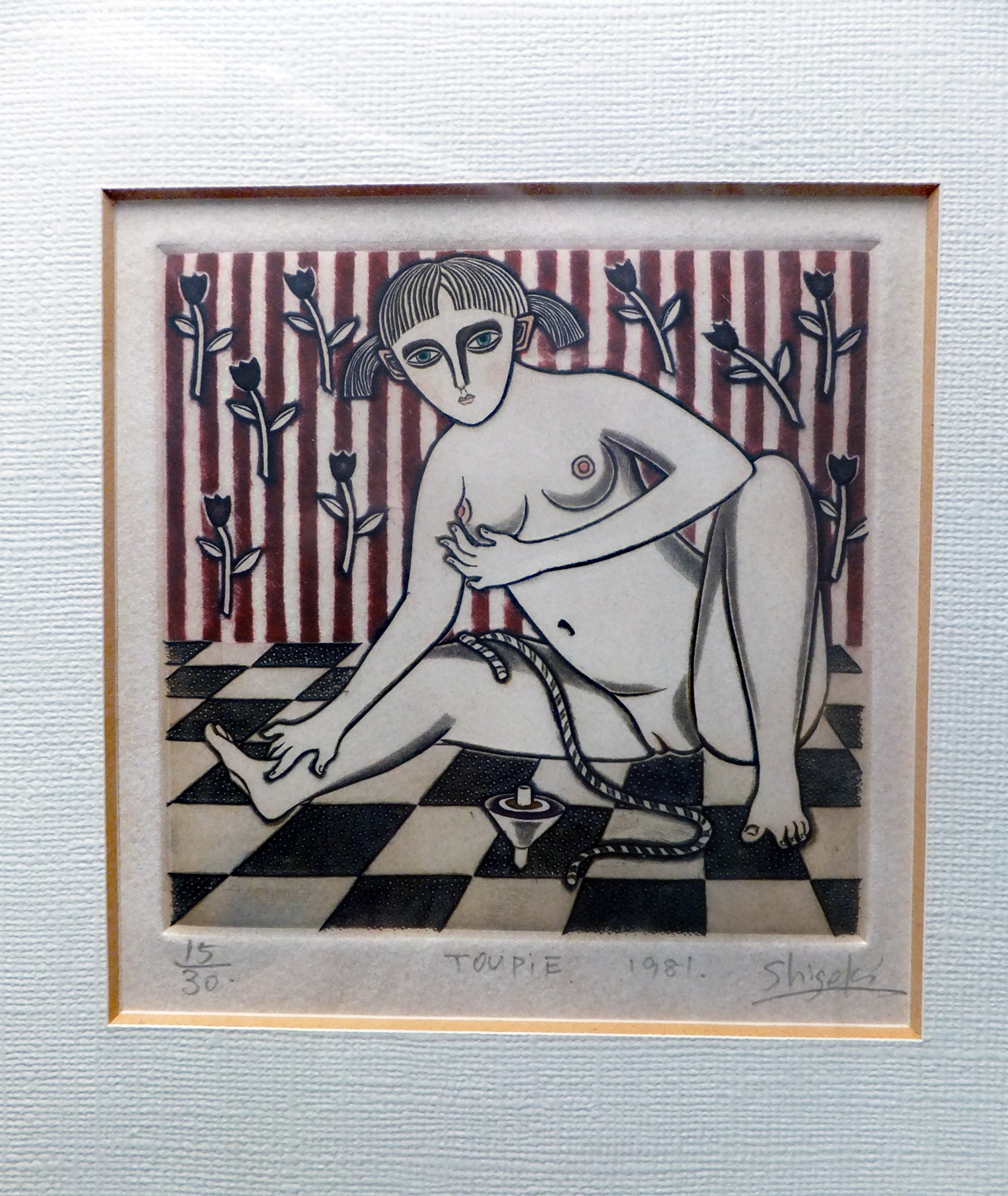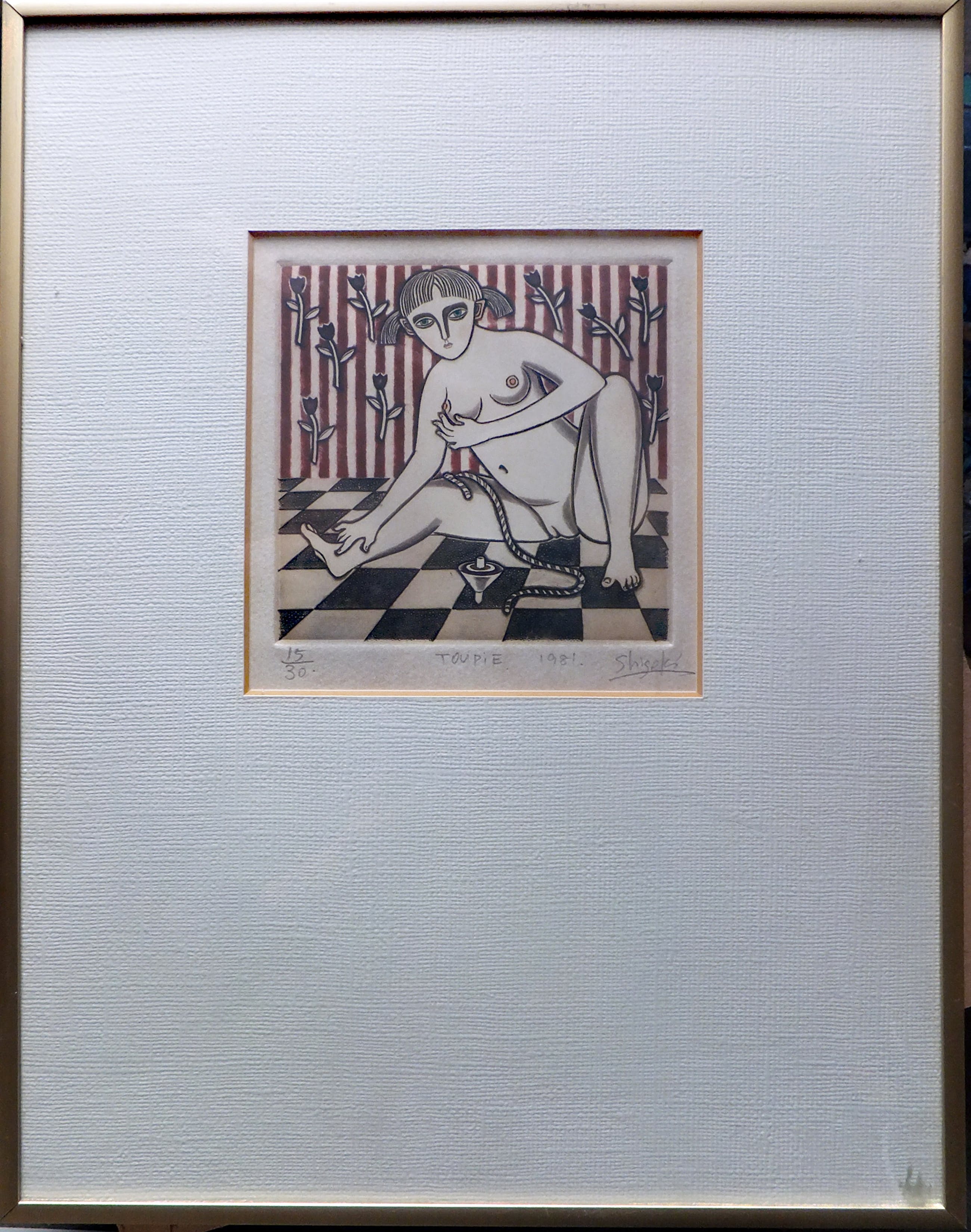 Totaal onbekende Japanse kunstenaar, opleiding gehad in Japan en verder opgeleid in Parijs. Heeft een naam opgebouwd met naakten en erotische etsen. Ets mooi ingelijst in aluminium lijst en een dik pp.