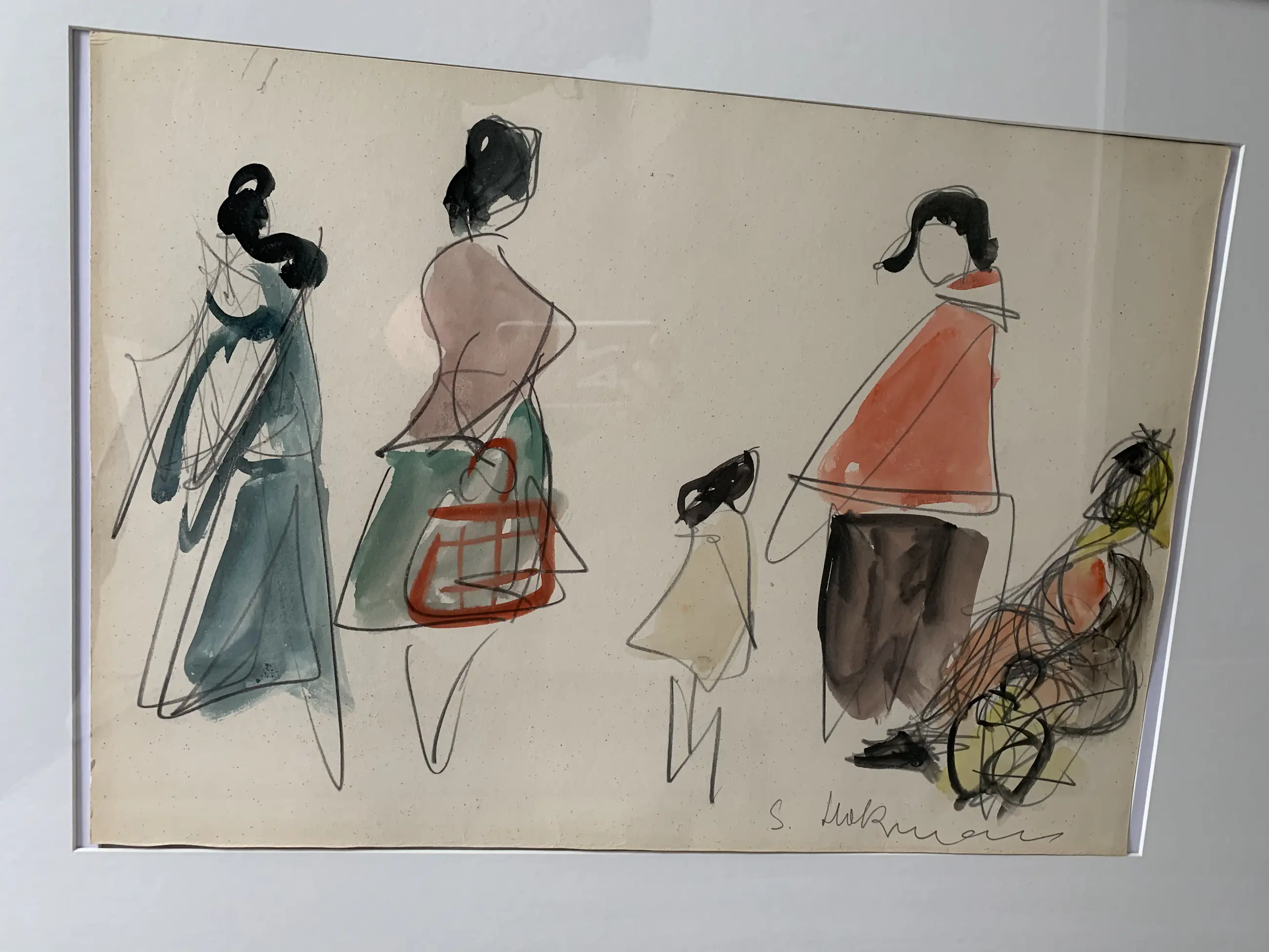 Shimshon Holzman - 'Ladies' - Aquarel en potlood tekening