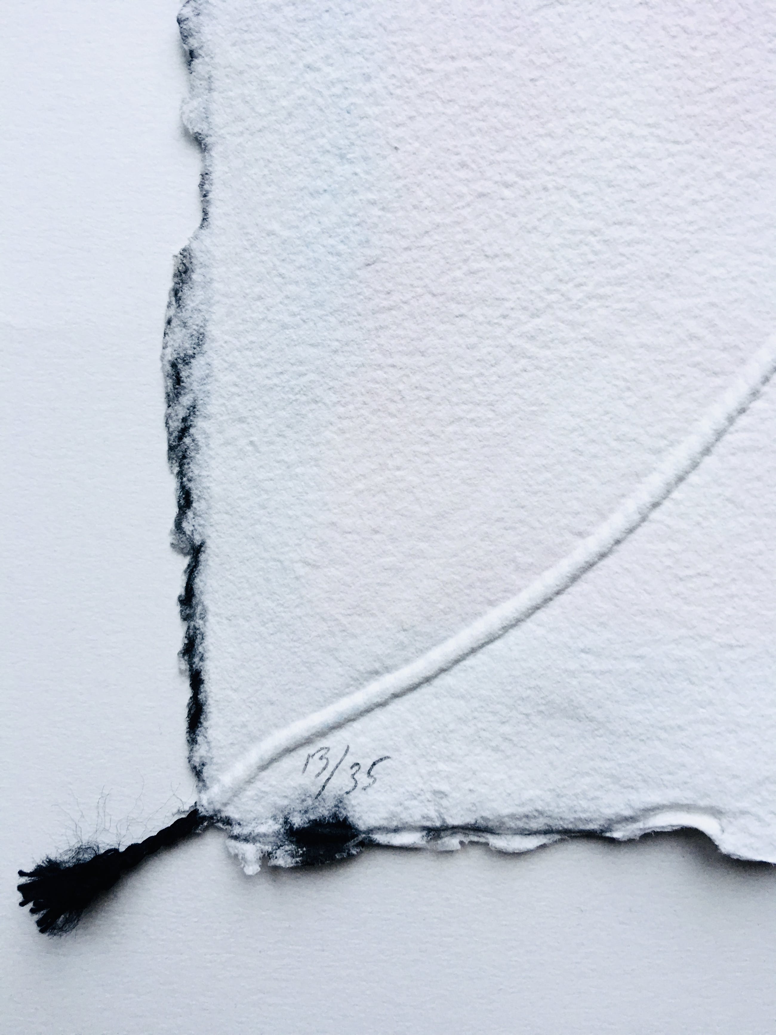 Een fraaie, zeldzame aquagravure van Tajiri uit 1993, uiteraard met de kenmerkende knoop. Het werk is aan een zijde minimalistisch wit en aan de andere zijde kleurrijk Cobra. Twee kunstwerken in een! Tevens aan beide zijden gesigneerd en genummerd. Afmetingen: 31 x 31 cm (blad).