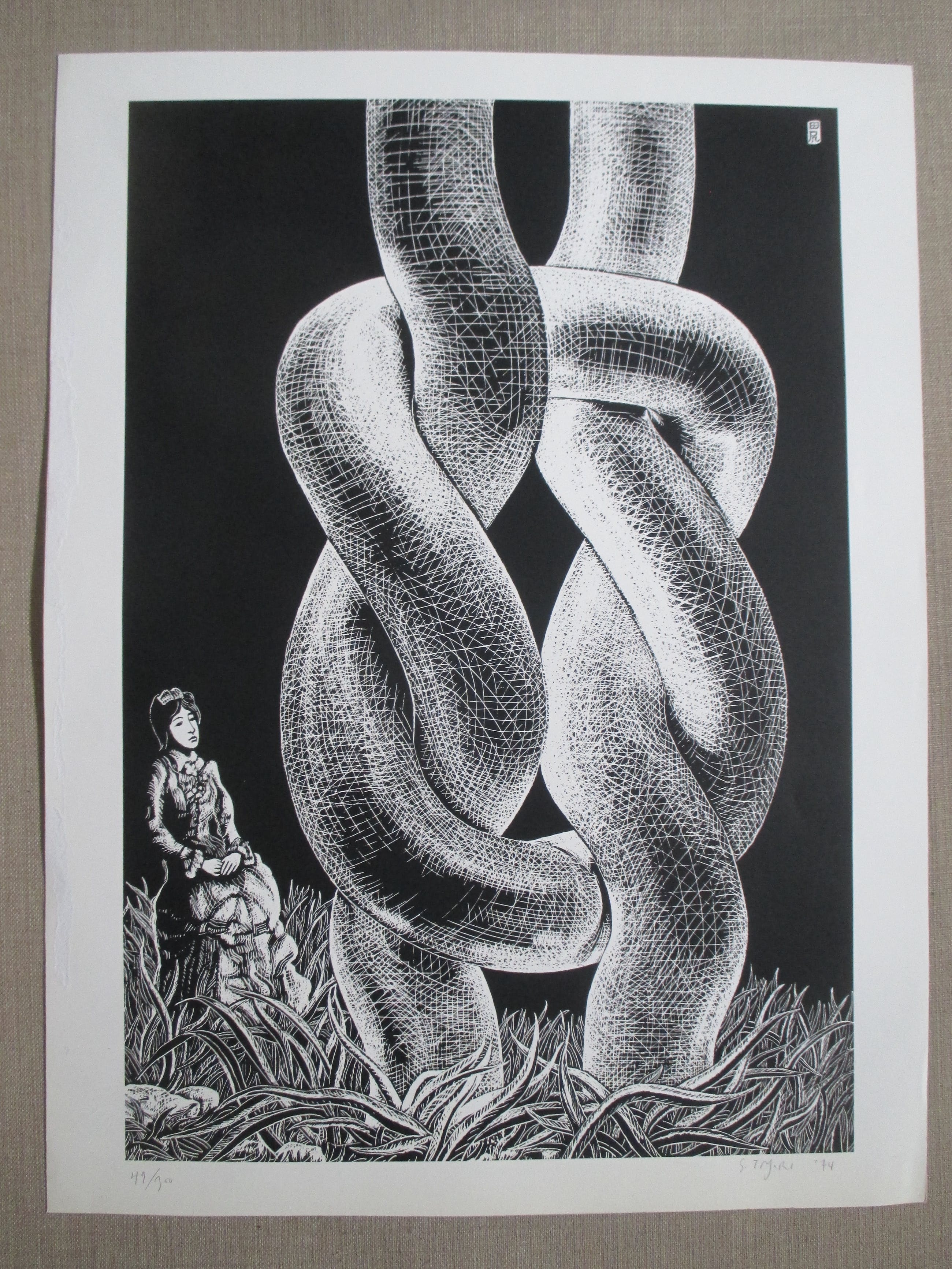 Litho van Shinkichi Tajiri, gesigneerd, genummerd en gedateerd in potlood.
