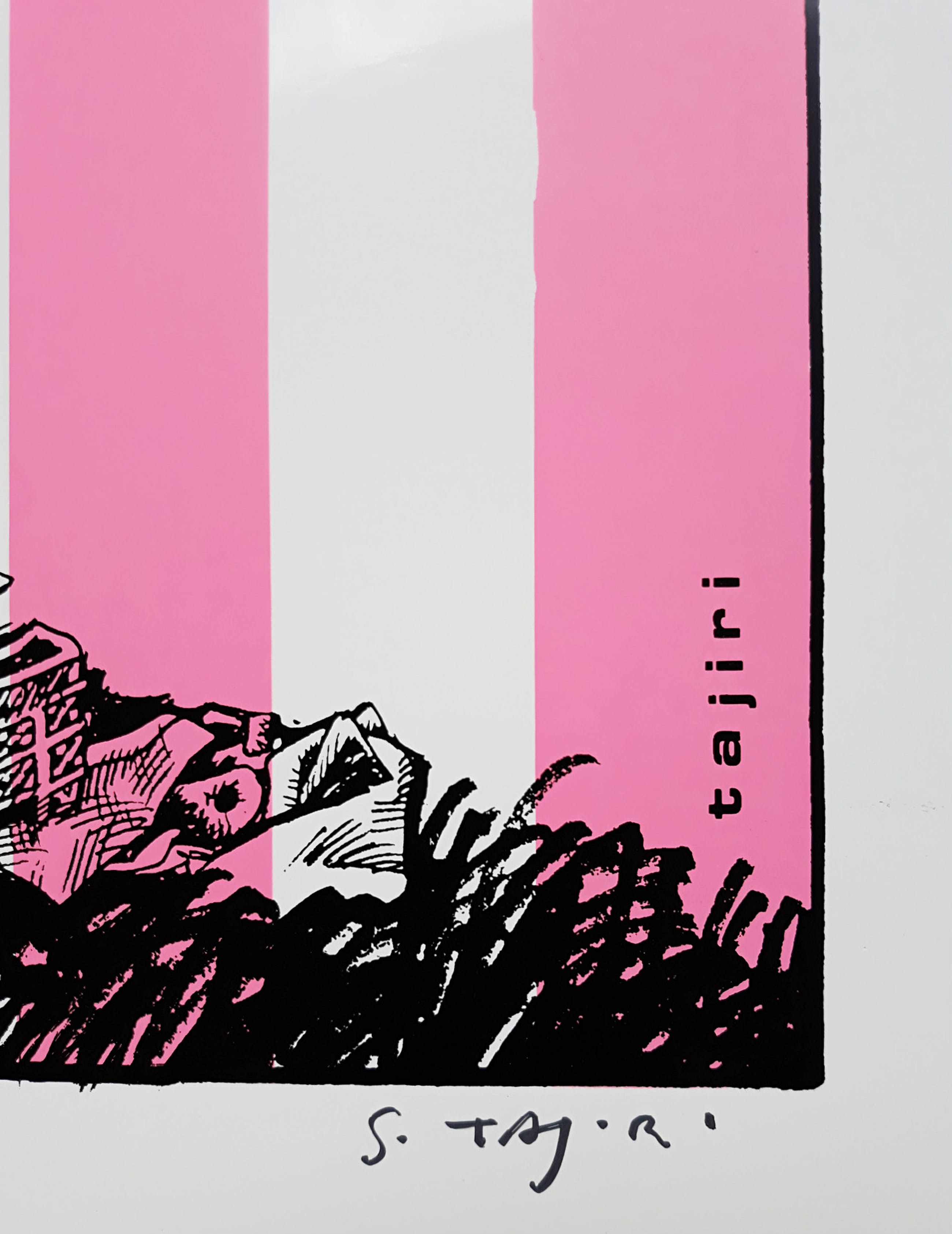 Mooie zeefdruk van Shinkichi Tajiri op glanzend wit, geplastificeerd papier. Met stift gesigneerd en genummerd (130/190). In uitstekende conditie.