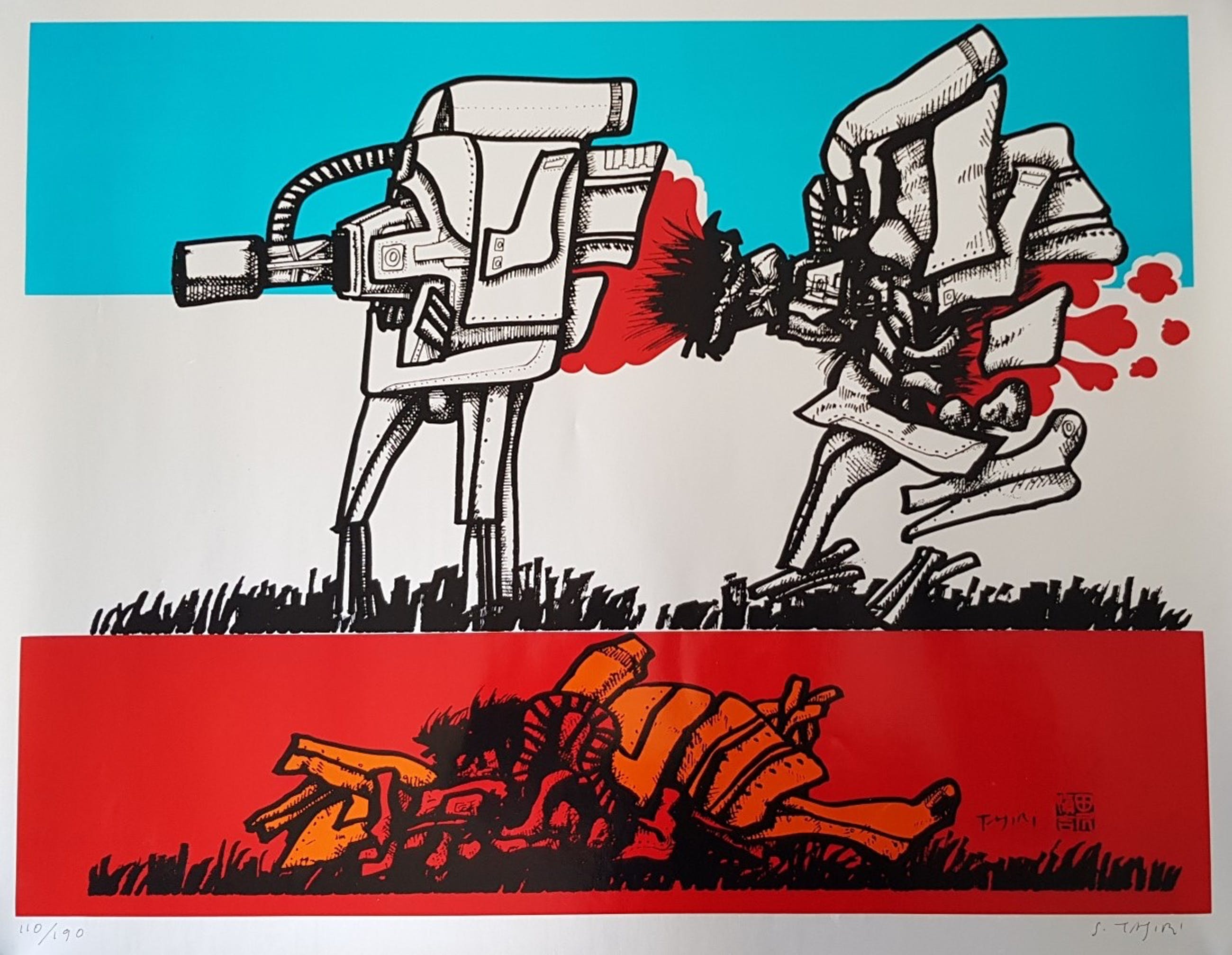 Fraaie zeefdruk op zilverprint van de beroemde kunstenaar Shinkichi Tajiri.