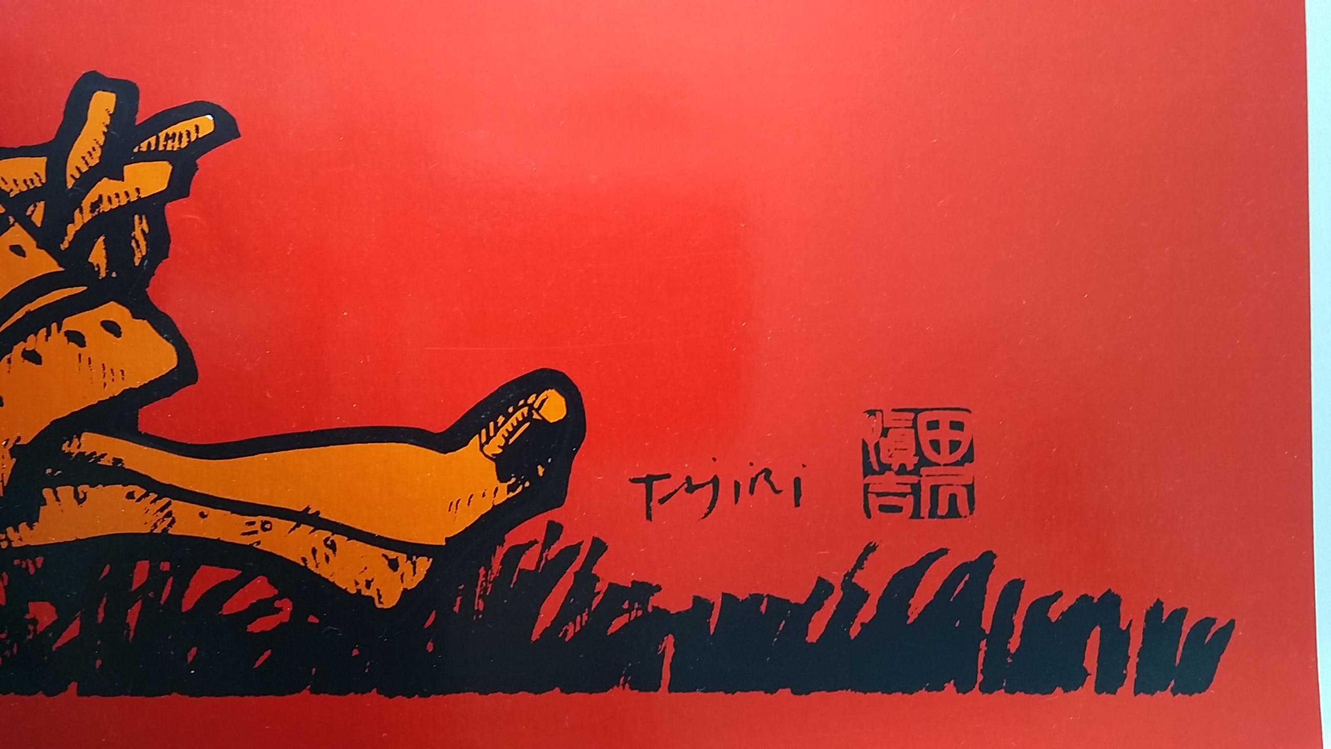 Fraaie zeefdruk op zilverprint van de beroemde kunstenaar Shinkichi Tajiri.