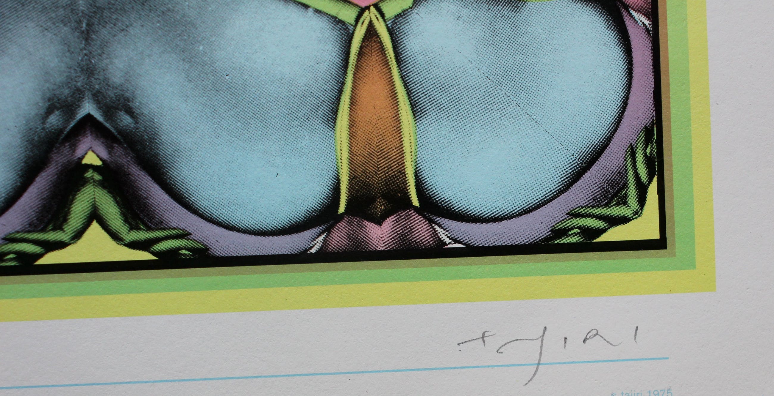 Titel: My secret garden no 1 Jaartal: 1975 Afmetingen blad: 76 cm x 56 cm Oplage: 102/190 Gesigneerd: Ja, handgeschreven met potlood (rechtsonder) Materiaal: Offset op papier Ingelijst: Nee