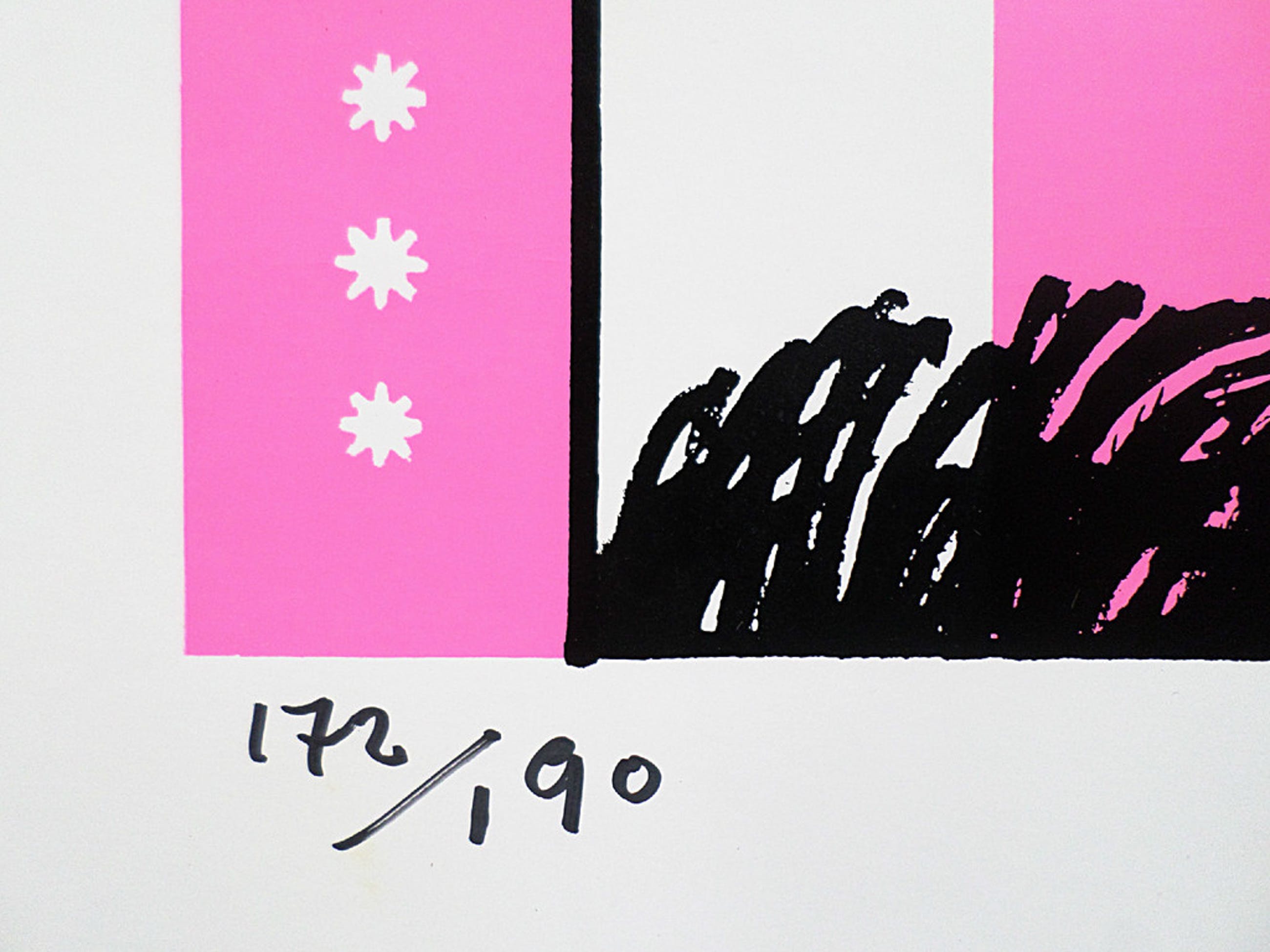 Fraaie zeefdruk van Shinkichi Tajiri op wit glanzend papier. Uitgegeven door Prent 190 in 1969. Handgesigneerd en genummerd (172 uit een oplage van 190 stuks). In uitstekende conditie, nooit ingelijst geweest.