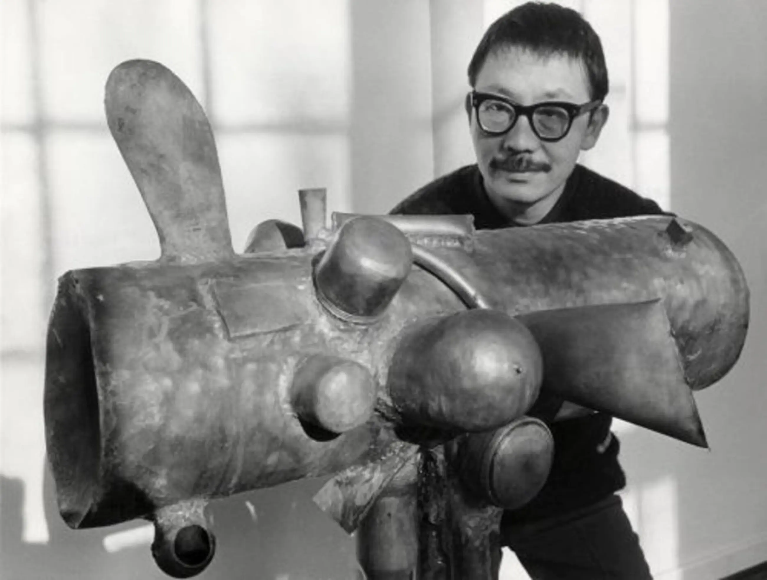 Shinkichi Tajiri werd als Shinkichi George Tajiri op 7 december 1923 geboren te Los Angeles. Hij was een veelzijdig kunstenaar. Hoewel hij zich in vele disciplines heeft geuit droeg hij als experimentele beeldhouwer bij aan Cobra. Daarnaast is hij schilder en heeft zich beziggehouden met fotografie, film en computertekeningen. Veelzijdig betekent bij Tajiri bovendien internationaal georiënteerd: Amerikaans door zijn geboorteplaats, Japans door geboorte uit Japanse ouders van het oude aristocratische Samoerai geslacht, Frans doordat in Parijs zijn artistieke carrière begon, en Nederlands omdat hij al sinds 1956 in Nederland woont. Na de Tweede Wereldoorlog studeerde hij aan het Art Institute in Chicago en begon te experimenteren met driedimensionale objecten. In 1948 ging hij naar Parijs waar hij les nam bij de beeldhouwer Ossip Zadkine (1890-1967) en in contact kwam met de Nederlandse Cobra kunstenaars Karel Appel (1921-2006), Constant (1920-2005) en Corneille (1922-2010). Vanwege zijn spontane werkwijze en de grote rol die hij het materiaal in zijn werk liet spelen, werd hij in hun groep opgenomen en uitgenodigd deel te nemen aan de grote Cobra tentoonstellingen in Amsterdam in 1949 en in Luik in 1951 waar hij debuteerde met een krijger in gips. Over de eerste krijgers (Samoerai’s) die in verschillende technieken steeds zouden terugkeren, verklaarde Tajiri: “zij drukten mijn behoefte uit mij te zuiveren van de gruwelen van de oorlog”. Hij verbeeldde zijn ervaringen in stekelige, in ijzer gelaste of in brons gegoten agressieve assemblages met hoogpotige vormen en in symbolen van geweld, seks en vruchtbaarheid. In 1953 maakte hij met zuren en spijkers bewerkte reliëfs die hij “verschroeide aarde” noemde om aan te geven hoe geteisterd diezelfde aarde werd waarmee hij zich zozeer verbonden voelde. Hij sprak zijn verwondering uit over de ontzaglijke groeikracht van de natuur in een serie gietijzeren op planten lijkende delicate beelden bezield door een innerlijke kiemkracht. Zijn fascinatie voor de drang tot leven, zich te ontvouwen tot nieuwe ongekende natuurvormen, bereikte een hoogtepunt in de poëtische Zen-tuin die Tajiri in 1995 ontwierp voor de patio van het Cobra Museum voor Moderne Kunst getiteld “Karesansui” dat droge landschapstuin betekent en eens is omschreven als “een poging de geheime wetten van de natuur, vooral haar proporties, ritme, energie en beweging te doorgronden”. Tajiri heeft op overtuigende wijze de oosterse cultuur geïntegreerd in de westerse kunst. Zijn hele oeuvre is doordrenkt van “stille dynamiek”. De werken stralen een grote energie uit terwijl zij in “ruststand” staan. Dit denken in tegenstellingen die naast elkaar bestaan, elkaar in evenwicht houden en soms gelijk aan elkaar kunnen zijn, is kenmerkend voor de oosterse filosofie en het Zenboeddhisme, en is typisch Tajiri. Vanaf 1951 had hij talloze solo- en groepstentoonstellingen in Nederland, Duitsland, Denemarken, Amerika en Japan, ook in Cobra-verband. Hij nam deel aan “The Art of Assemblage” in 1961 in New York, de Biënnale van Venetië in 1961 en de Documenta in Kassel in 1964.