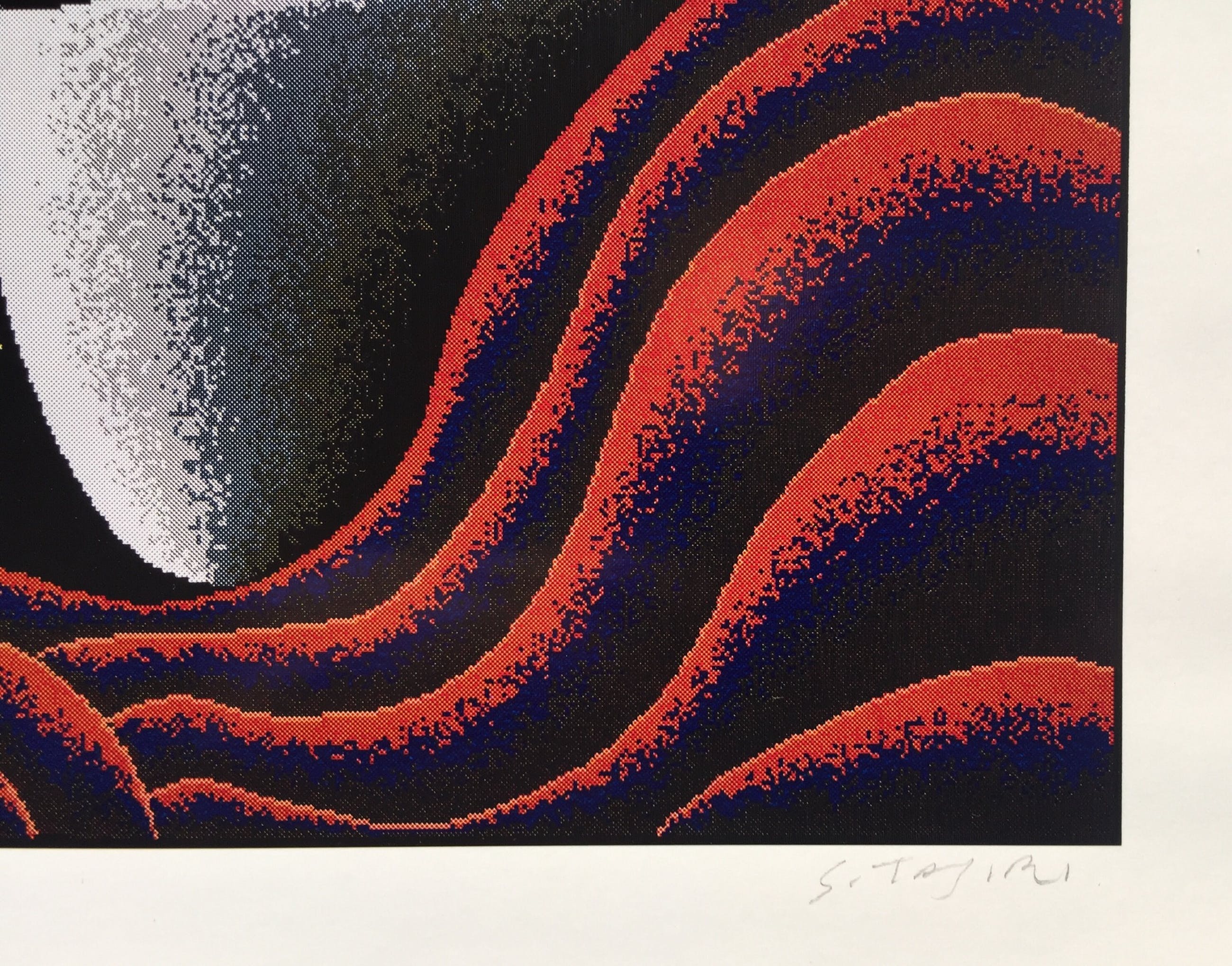 Een zeldzame computerprint van Tajiri, het werk is gesigneerd en genummerd, oplage EA. Regulier oplage is slecht 25 ex. plus enkele EA’s Destijds uitgegeven incl. originele bewaarmap. Het werk is in zeer goede conditie.