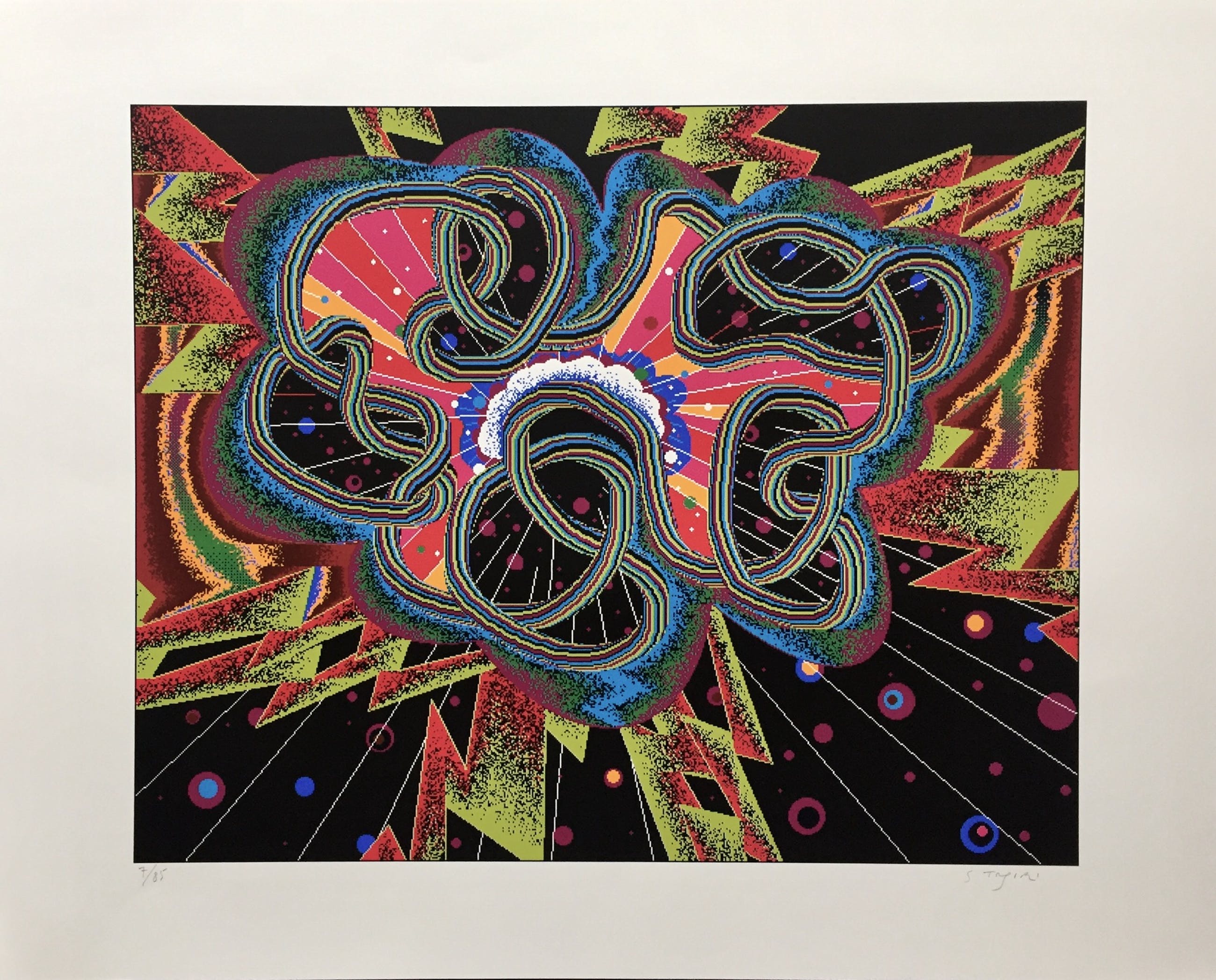 Een zeldzame zeefdruk van Shinkichi Tajiri, met zijn typerende knoop die wereldwijd bekend is. Het werk is gesigneerd en genummerd, oplage 85 ex. en is in zeer goede conditie.